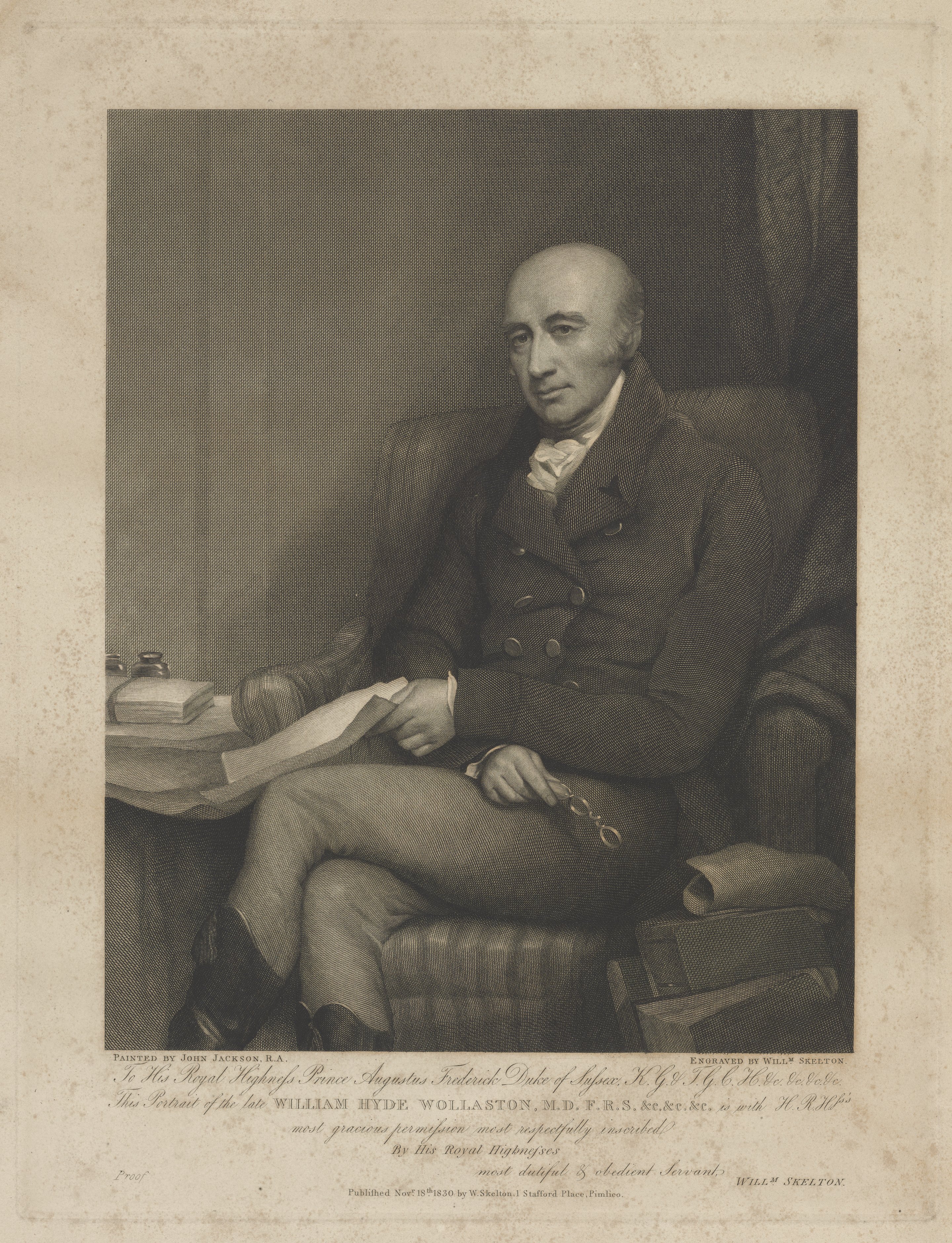 Skelton, William. “William Hyde Wollaston.” Wove paper, paper (fiber product). London, England: William Skelton, 1830. Science History Institute. Philadelphia. https://digital.sciencehistory.org/works/fj236214z.