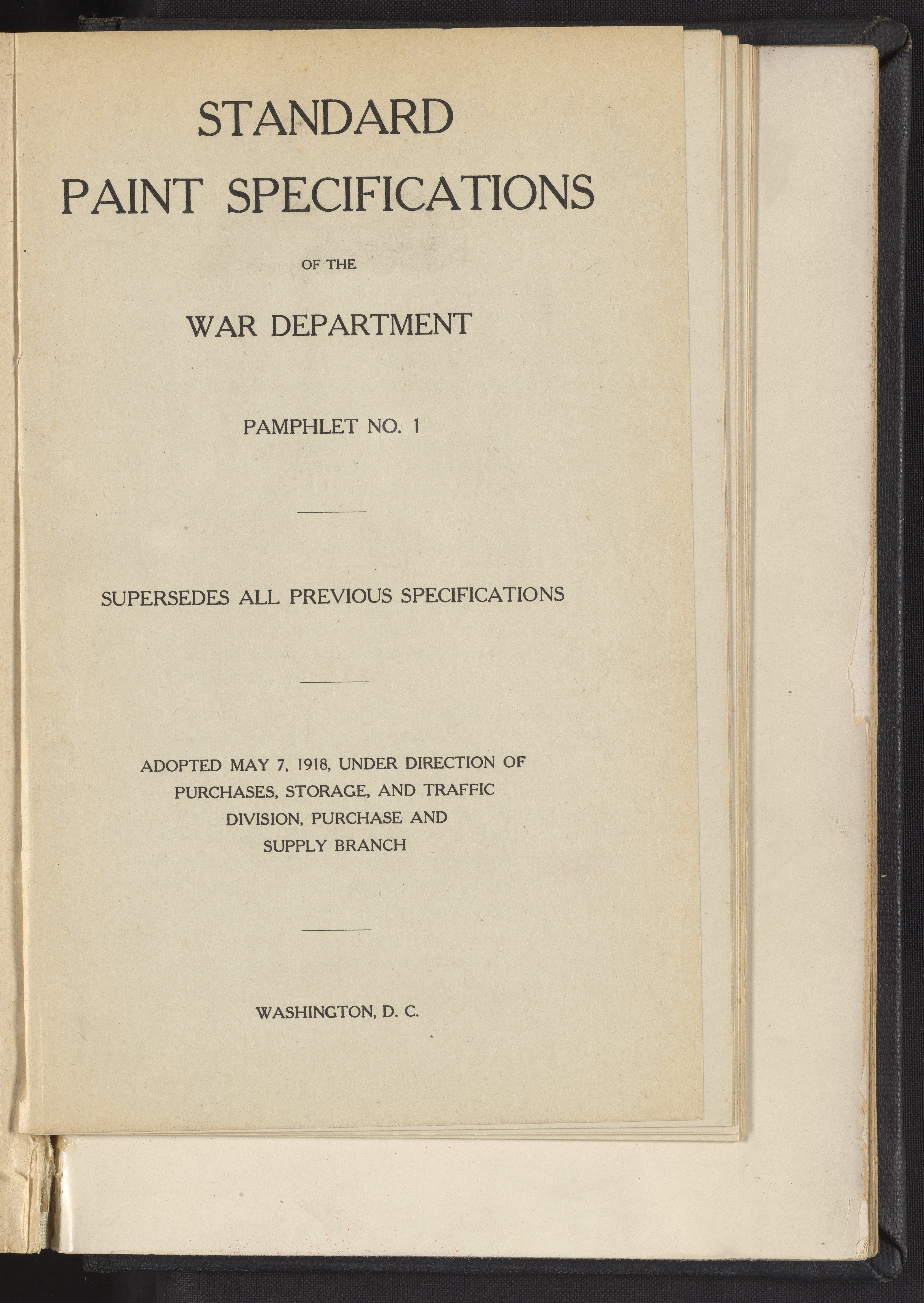 Standard Paint Specifications of the War Department, Pamphlet No. 1