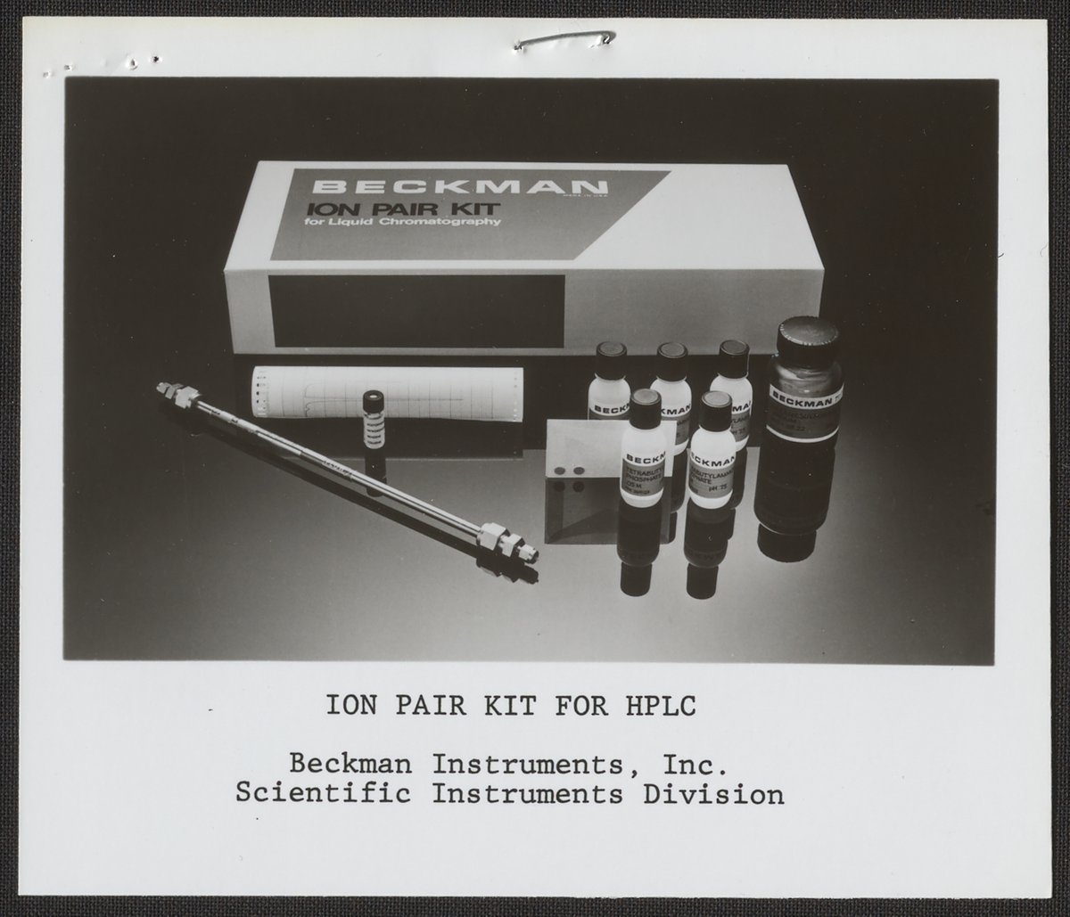 “Beckman Ion Pair Kit for HPLC,” n.d. Beckman Historical Collection, Box 84. Science History Institute. Philadelphia. https://digital.sciencehistory.org/works/fj236225g.
