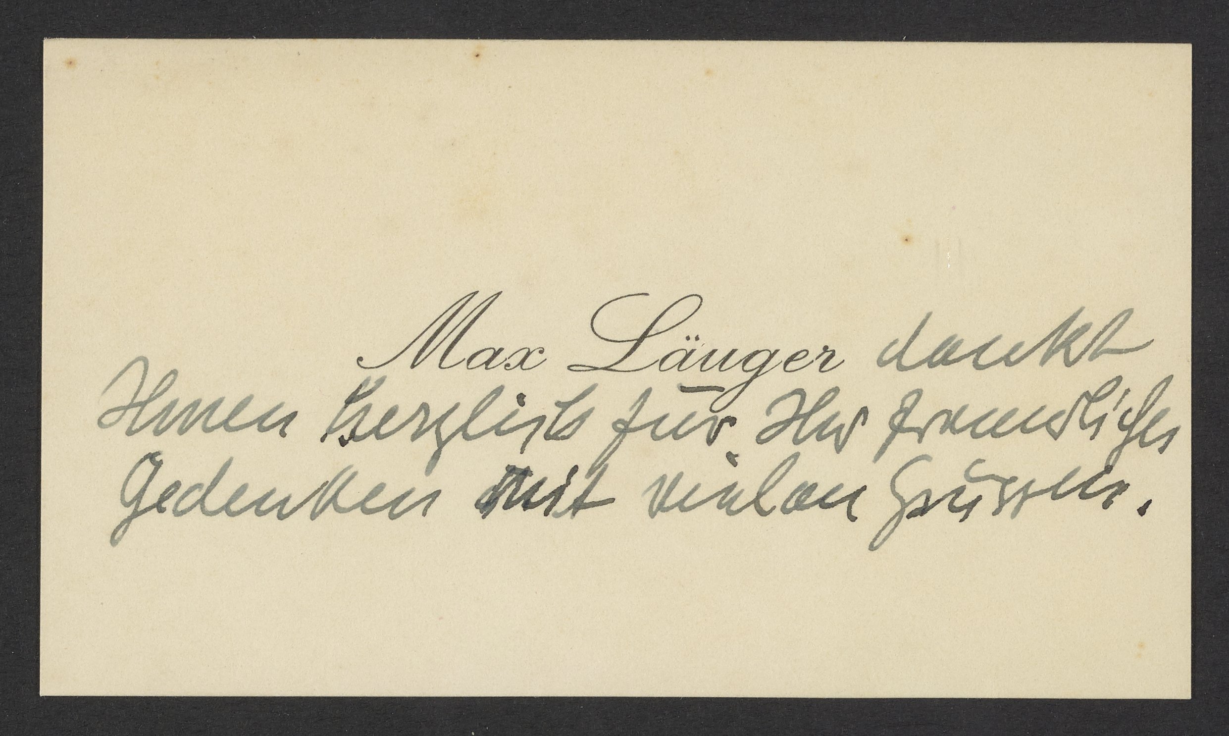 Calling card belonging to Max Läuger (1864-1952) a German architect, artist, and ceramicist. He was a professor of interior design at Karlsruhe Institute of Technology.
