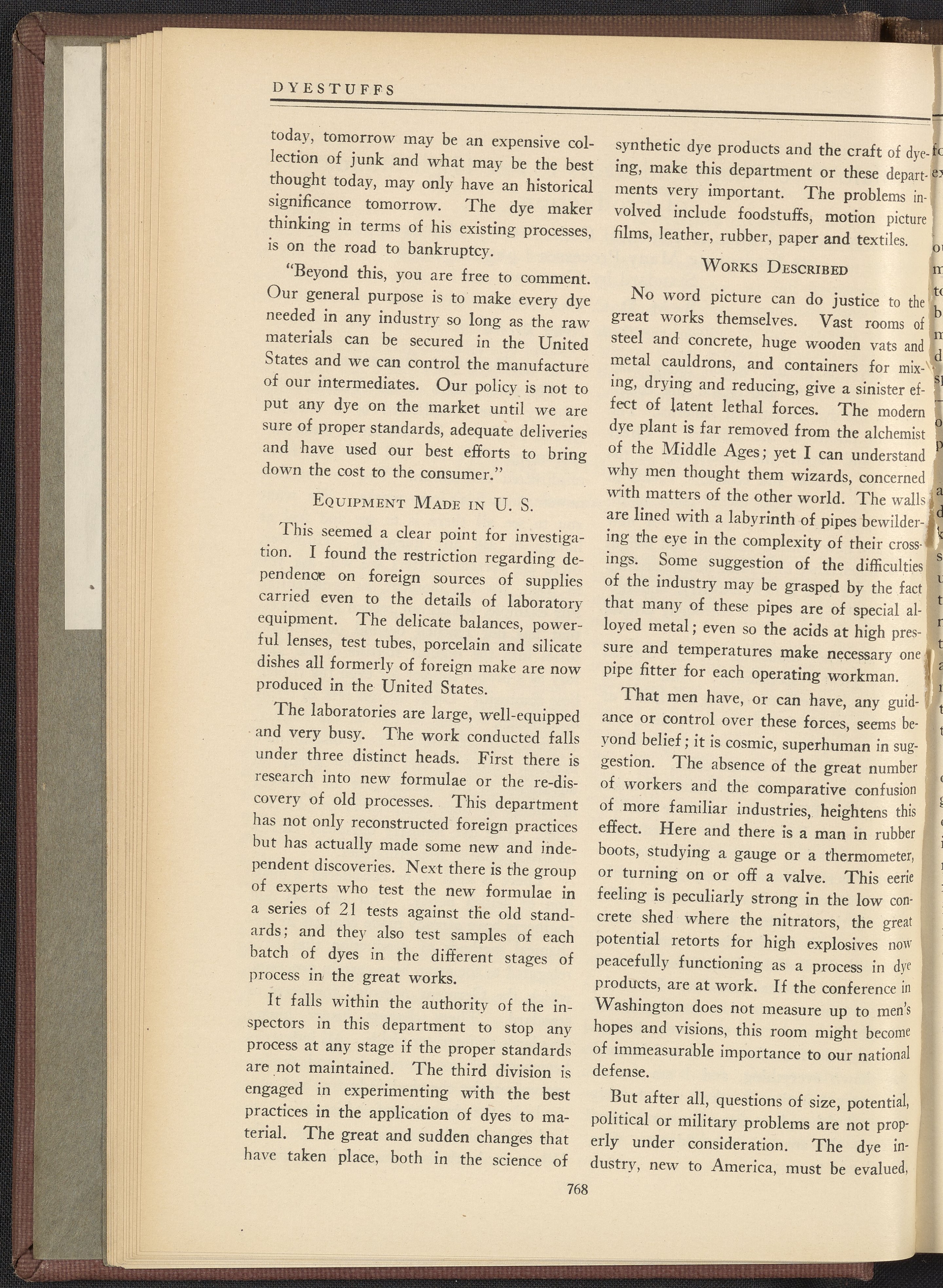 Small JPG1200 x 1812px — 408 KBFull-sized JPG2556 x 3860px — 1.5 MBOriginal fileTIFF — 2556 x 3860px — 28.3 MBFirst issue from the twenty-third volume of Dyestuffs, a journal publication from the National Aniline Division of the Allied Chemical & Dye Corporation issued on a monthly to quarterly basis from 1898 to 1964 (suspended briefly from 1916 to 1917).