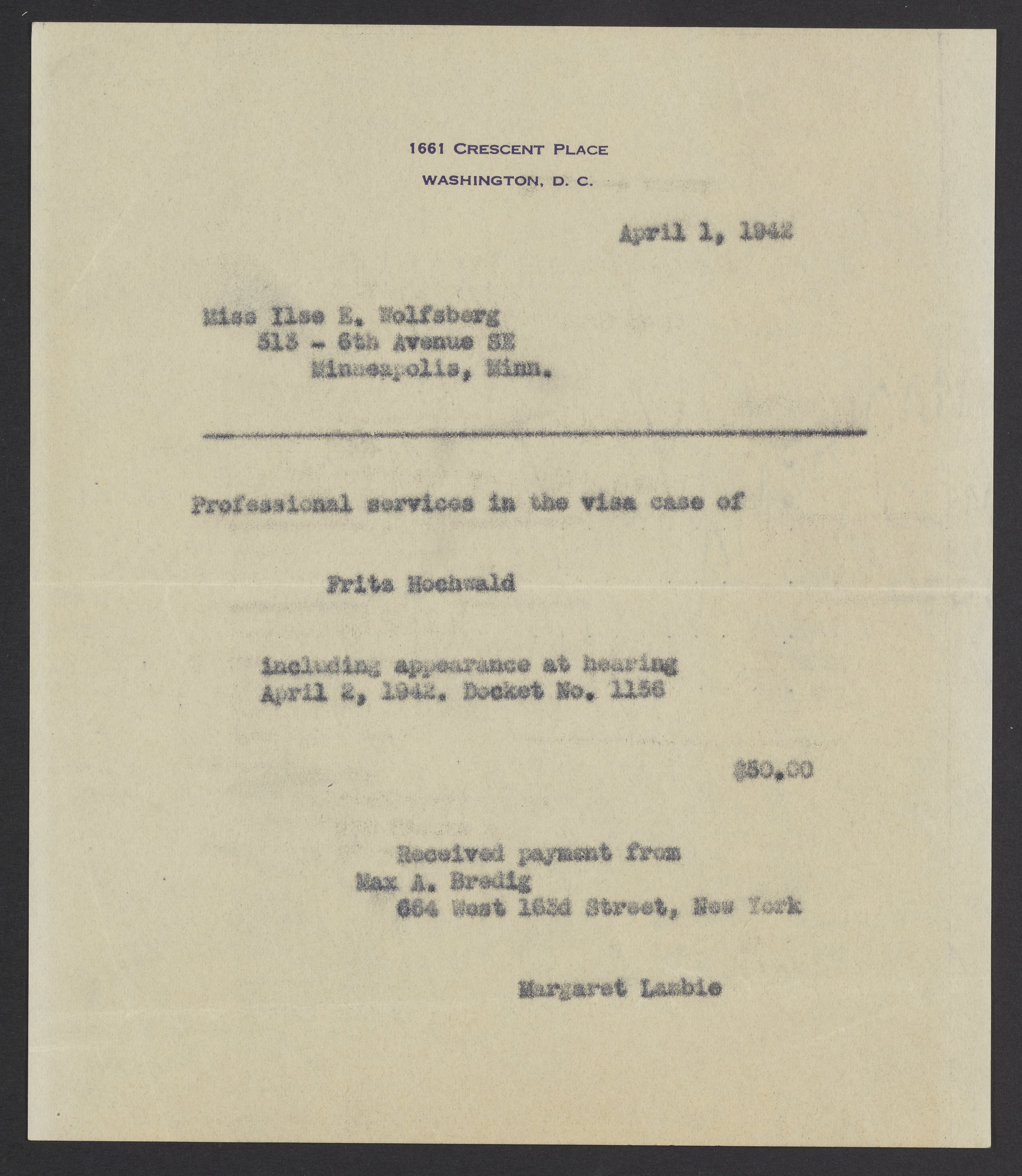 Letter from Margaret Lambie to Ilse Wolfsberg, April 1, 1942