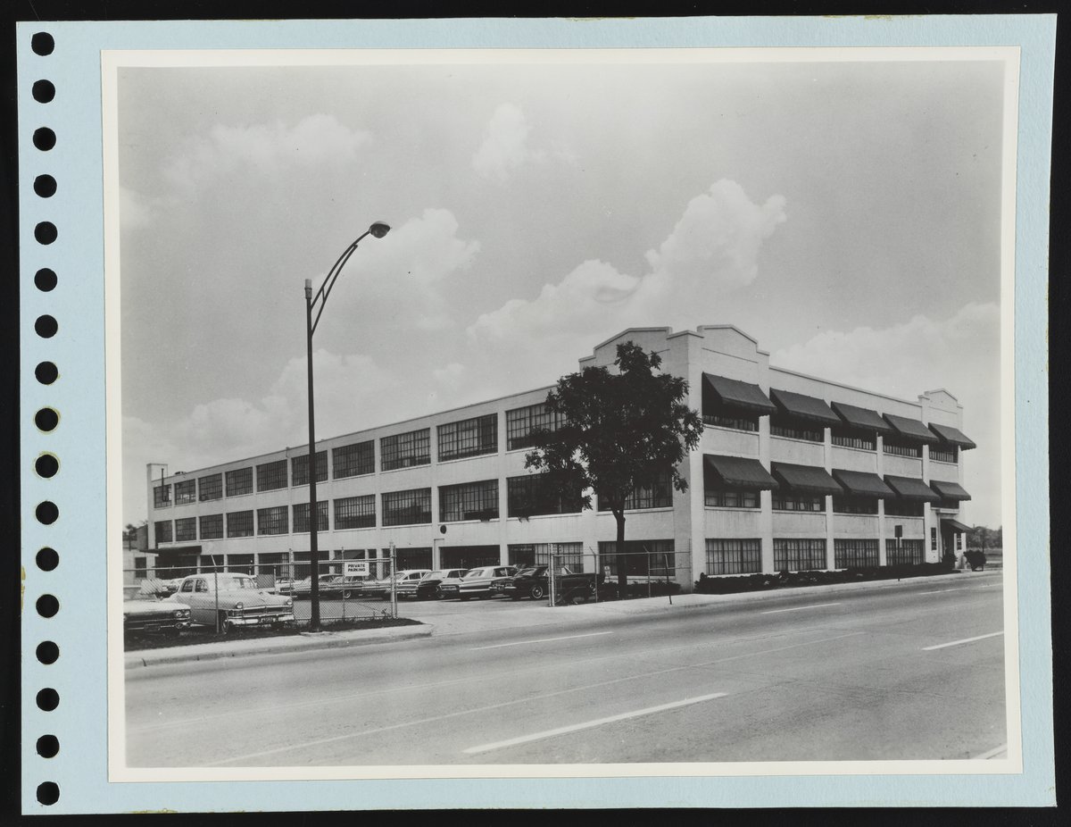 Rohm and Haas Company. “Exterior View of Warren-Teed Pharmaceuticals Facility.” Rohm and Haas Company Album of Domestic Locations, 1965, 1965. Rohm & Haas Company Archives, Box 23 (Photographs), Folder 7. Science History Institute. Philadelphia. https://digital.sciencehistory.org/works/fq977v60m.