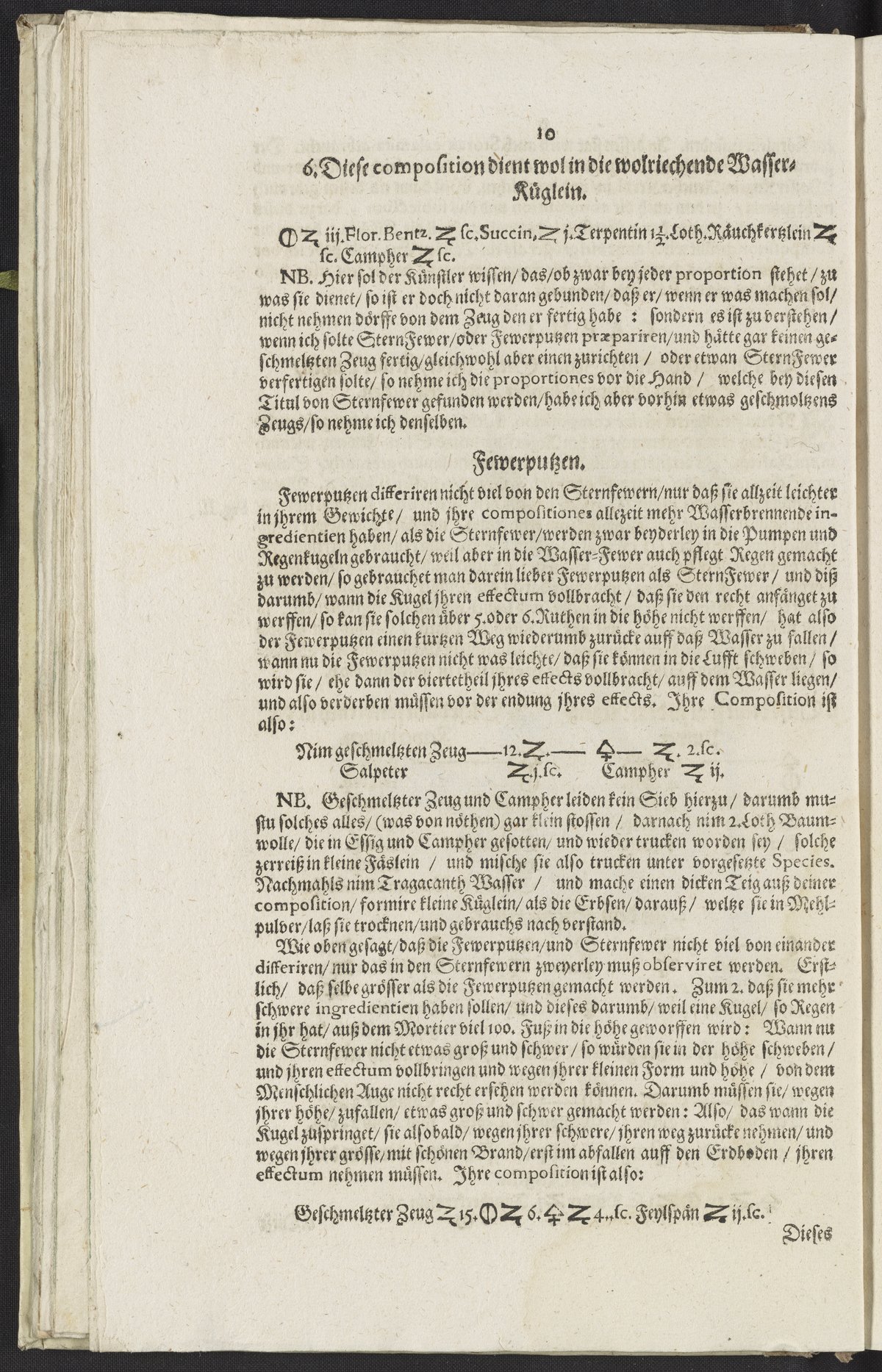 Vollenkommene Unterweisung, wie Raketen, Feuer- Wasser- Sturm-Kugeln, Granaten, Pech-Sturm-Kräntze, und allerhand Lust und Ernsthaffte Feuer-wercke zubereiten