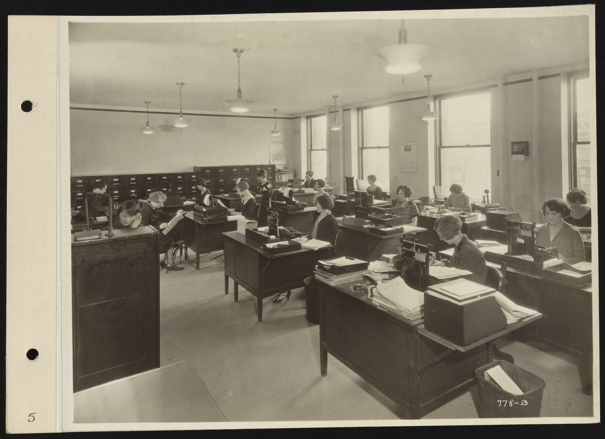 Dearborn Chemical Company. “Female Employees at Work in Dearborn Chemical Company Offices,” March 1925. BetzDearborn, Incorporated Records, Box 17, Folder 16. Science History Institute. Philadelphia. https://digital.sciencehistory.org/works/ft848r81m.