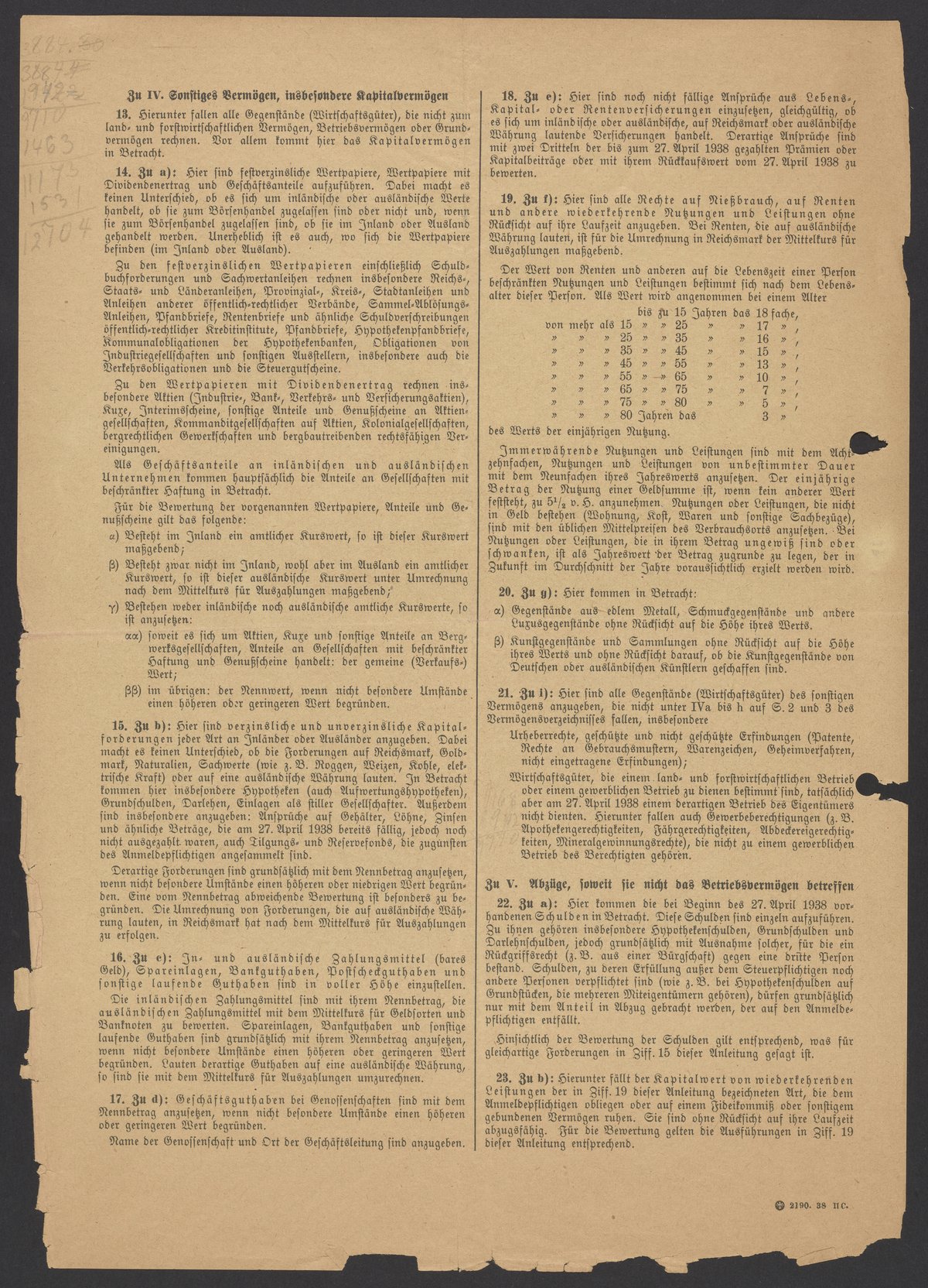 Merkblatt für Zahlung der Judenvermogensabgabe