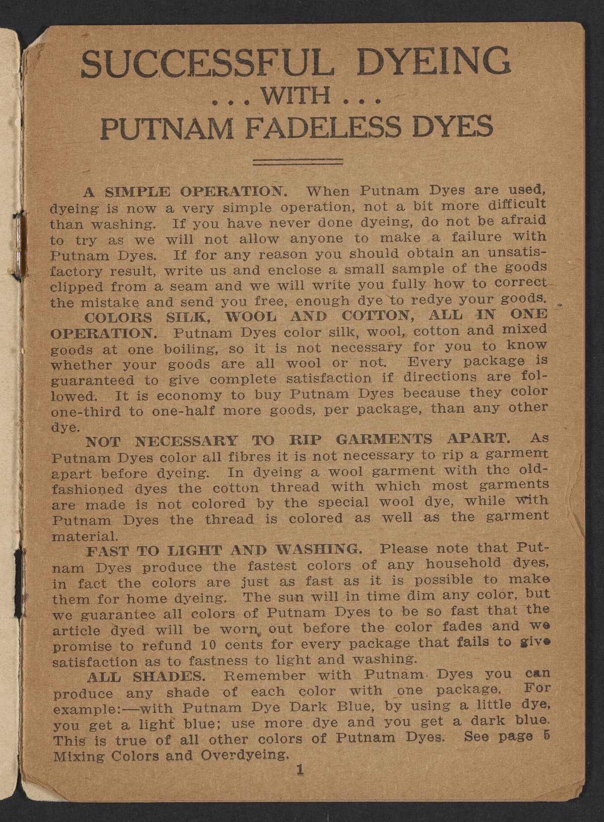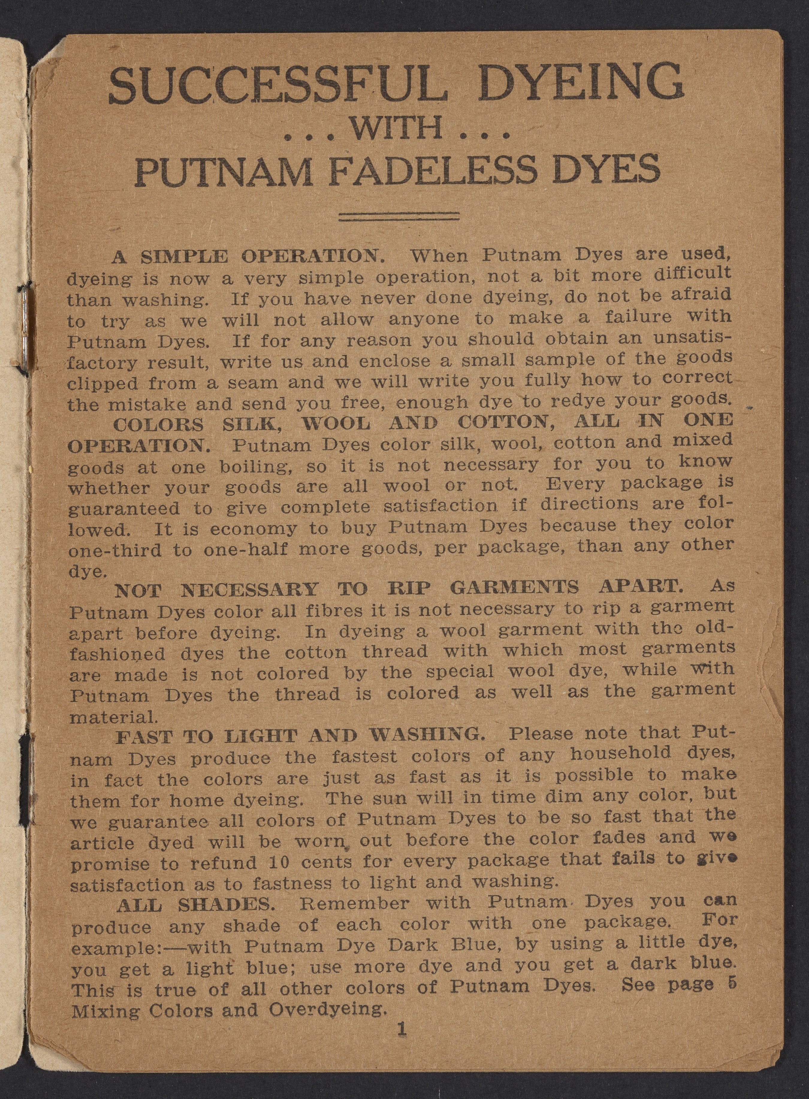 • Successful dyeing with Putnam Fadeless Dyes