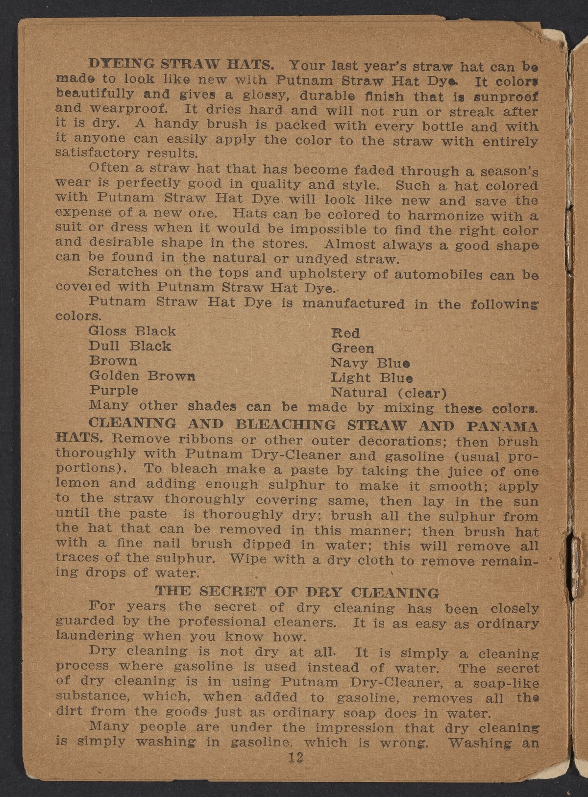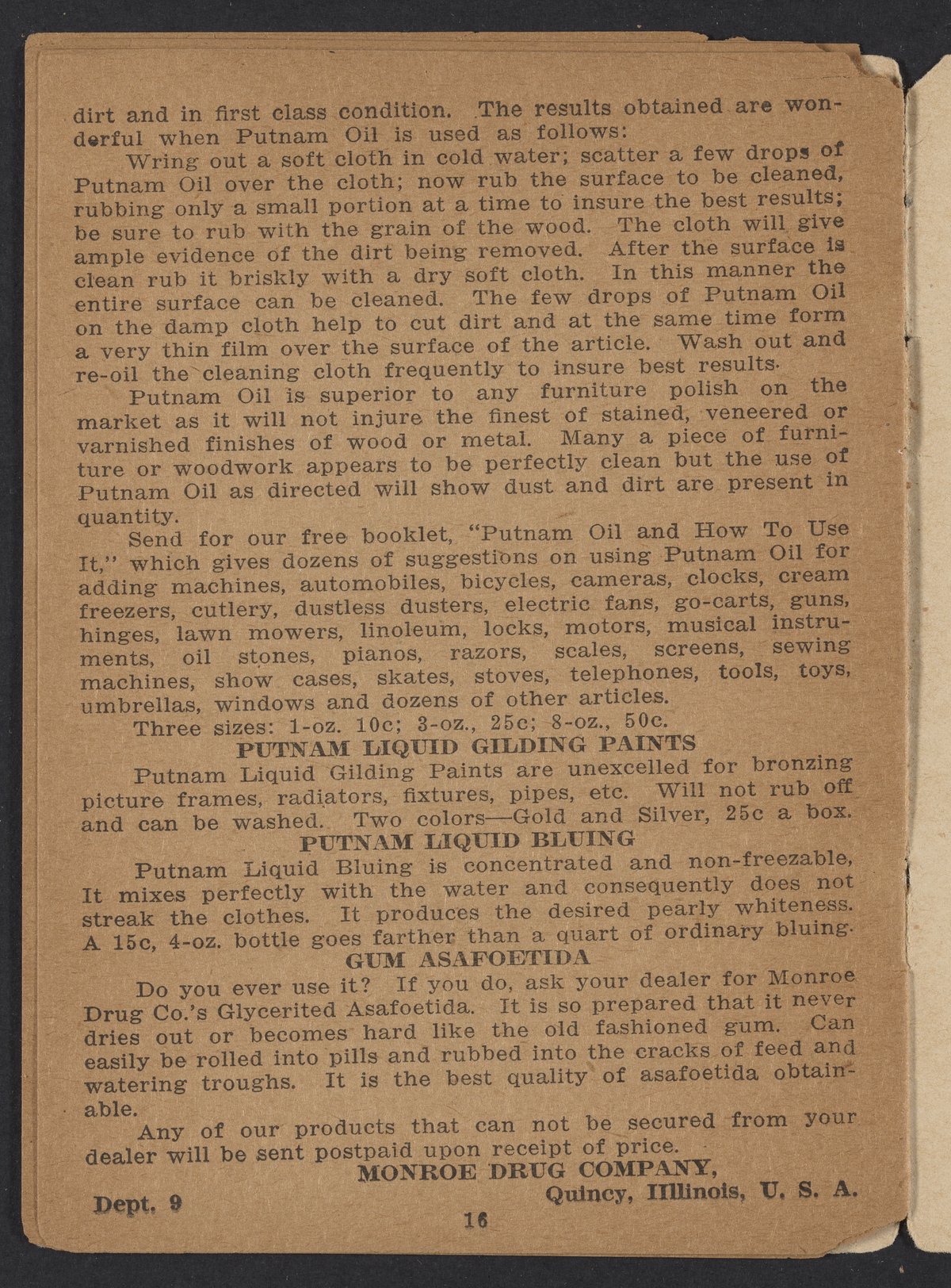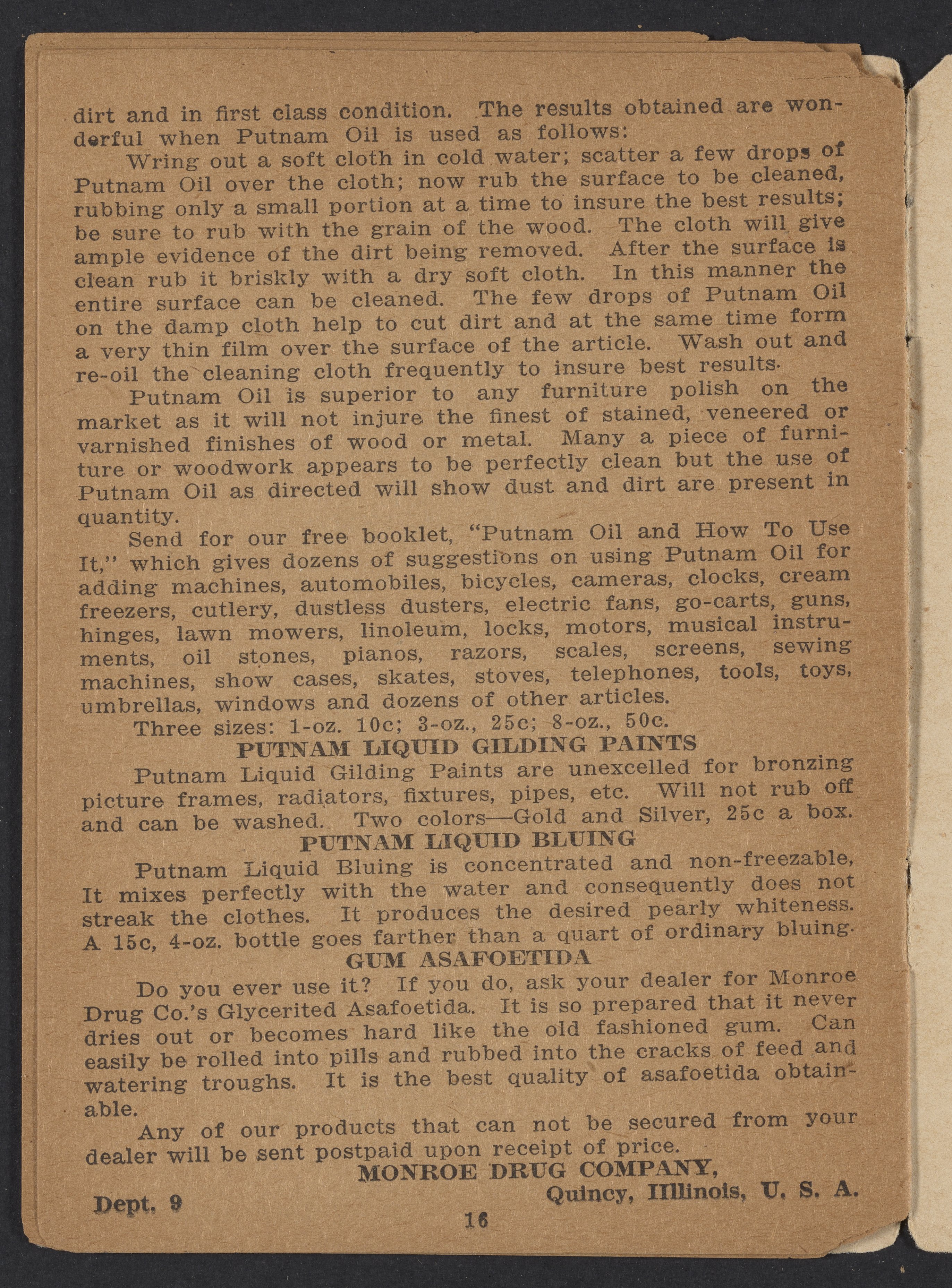 Putnam Fadeless Dyes : compliments of Monroe Drug Co.