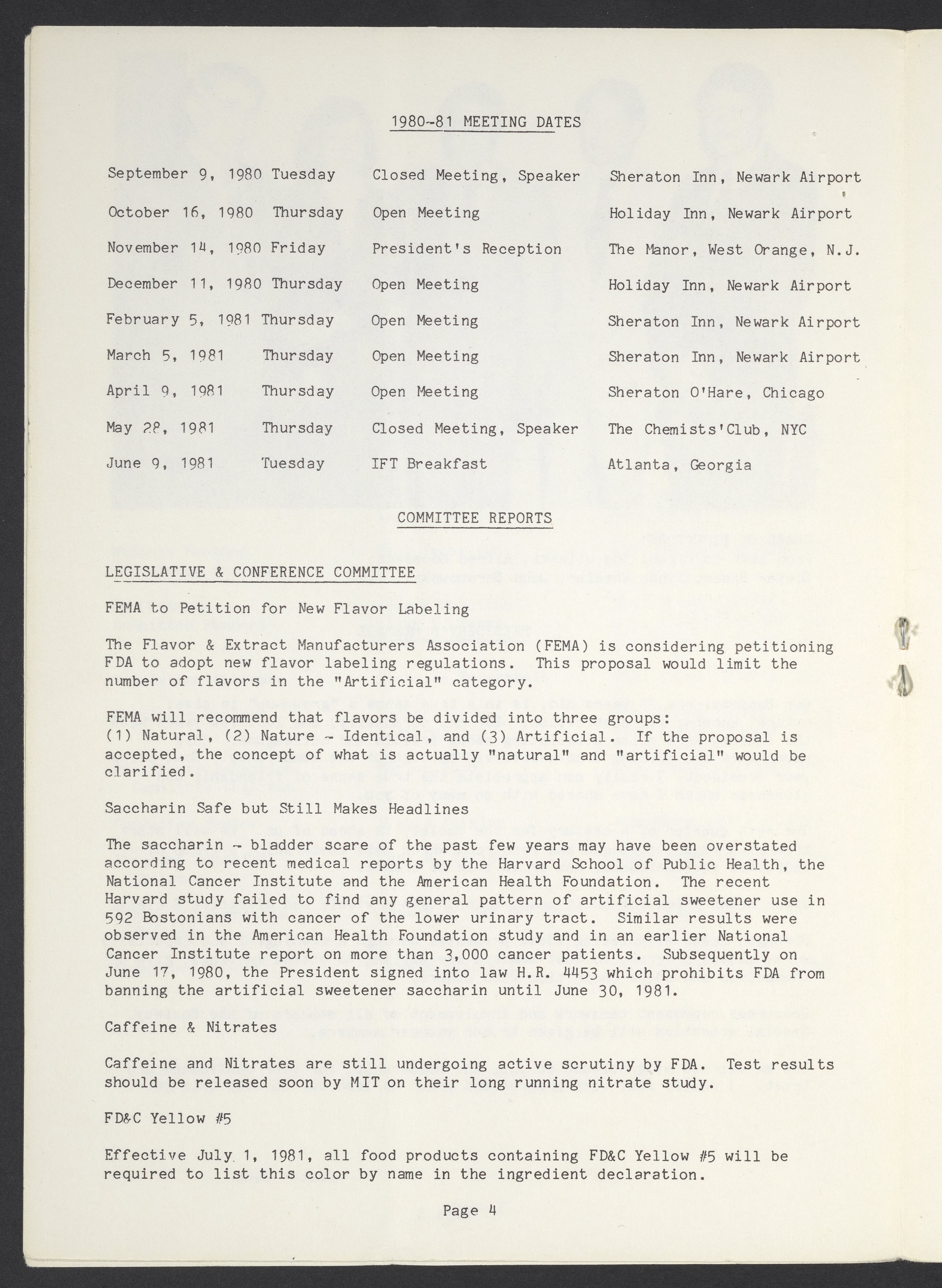 Society of Flavor Chemists. “Society of Flavor Chemists Newsletter, September 1980,” September 22, 1980. Society of Flavor Chemists Newsletters and Certificate of Incorporation, Box 1, Folder 1. Science History Institute. Philadelphia. https://digital.sciencehistory.org/works/fziduc9.