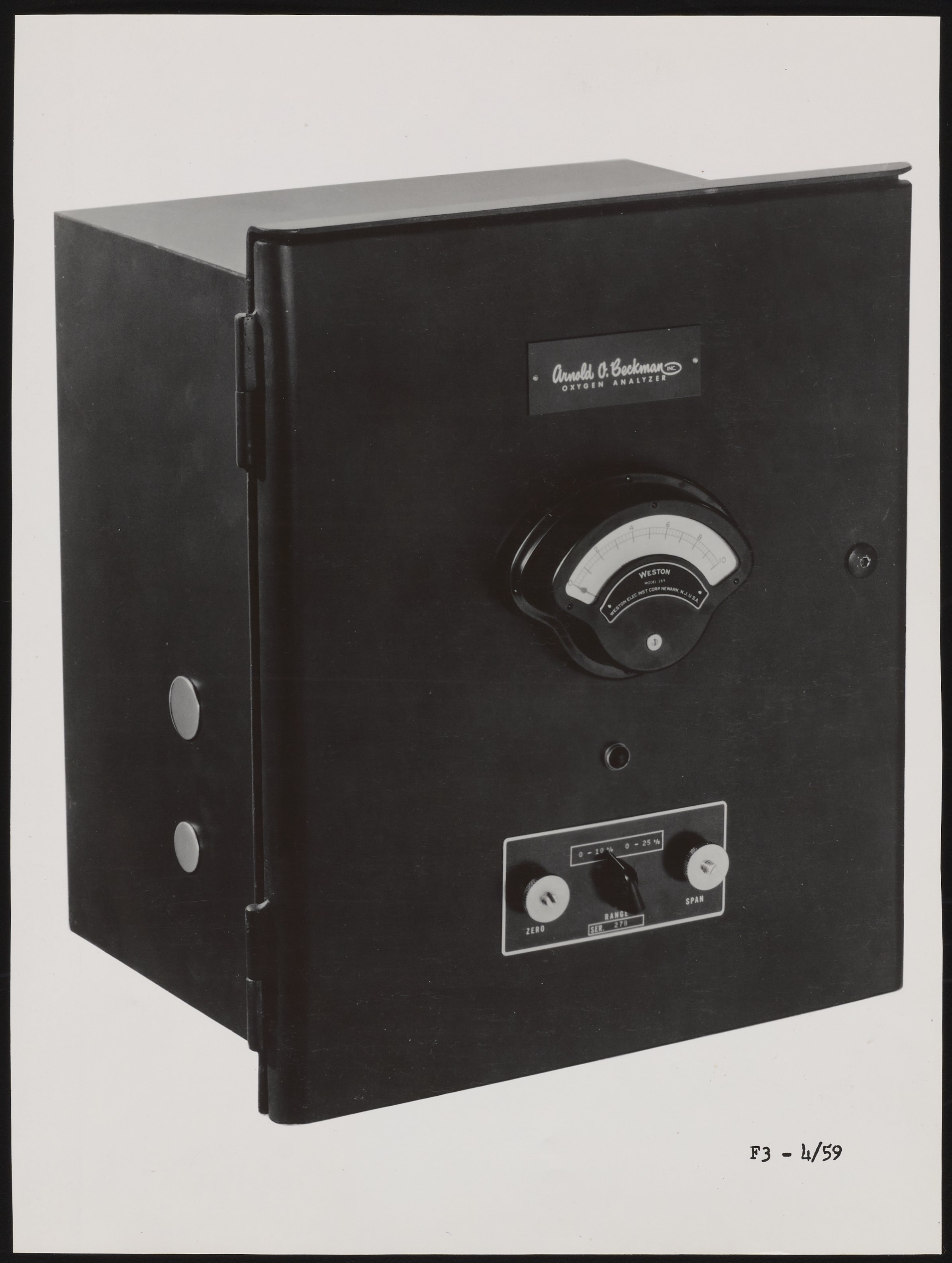“Beckman Model F3 Oxygen Analyzer,” 1959. Beckman Historical Collection, Box 59, Folder 32. Science History Institute. Philadelphia. https://digital.sciencehistory.org/works/g158bh30q.