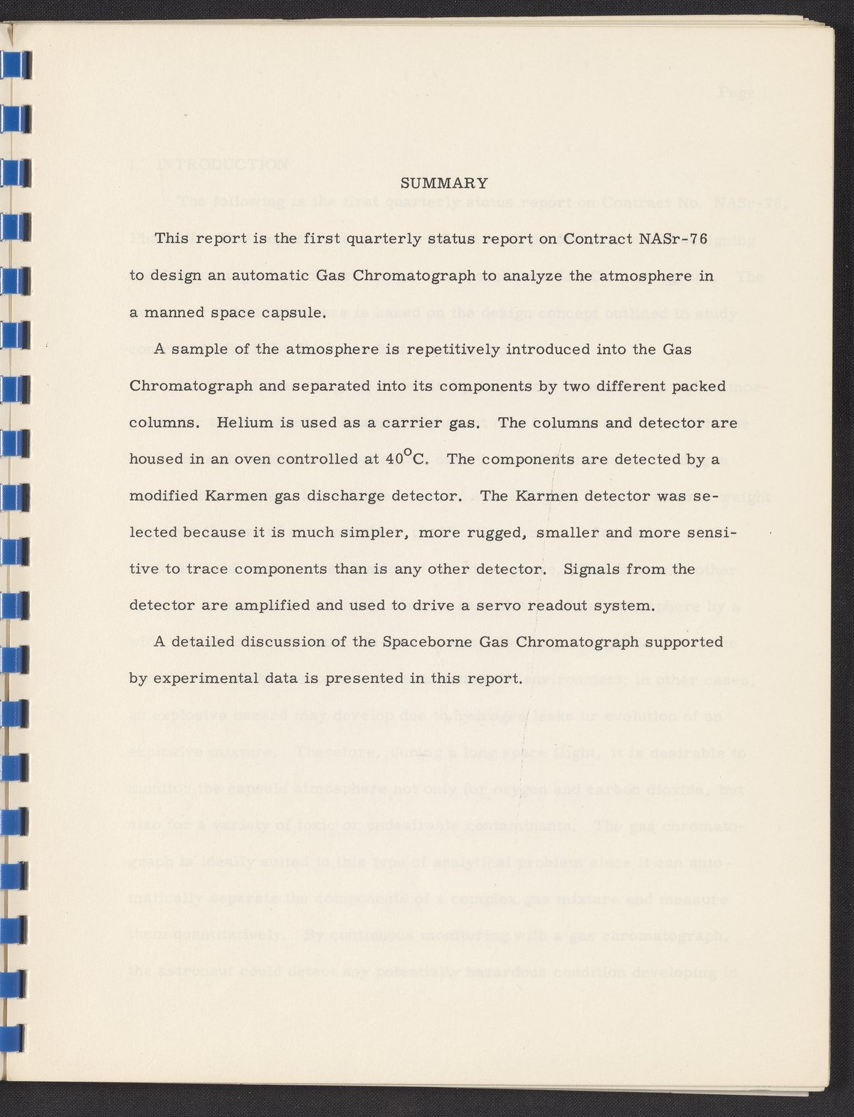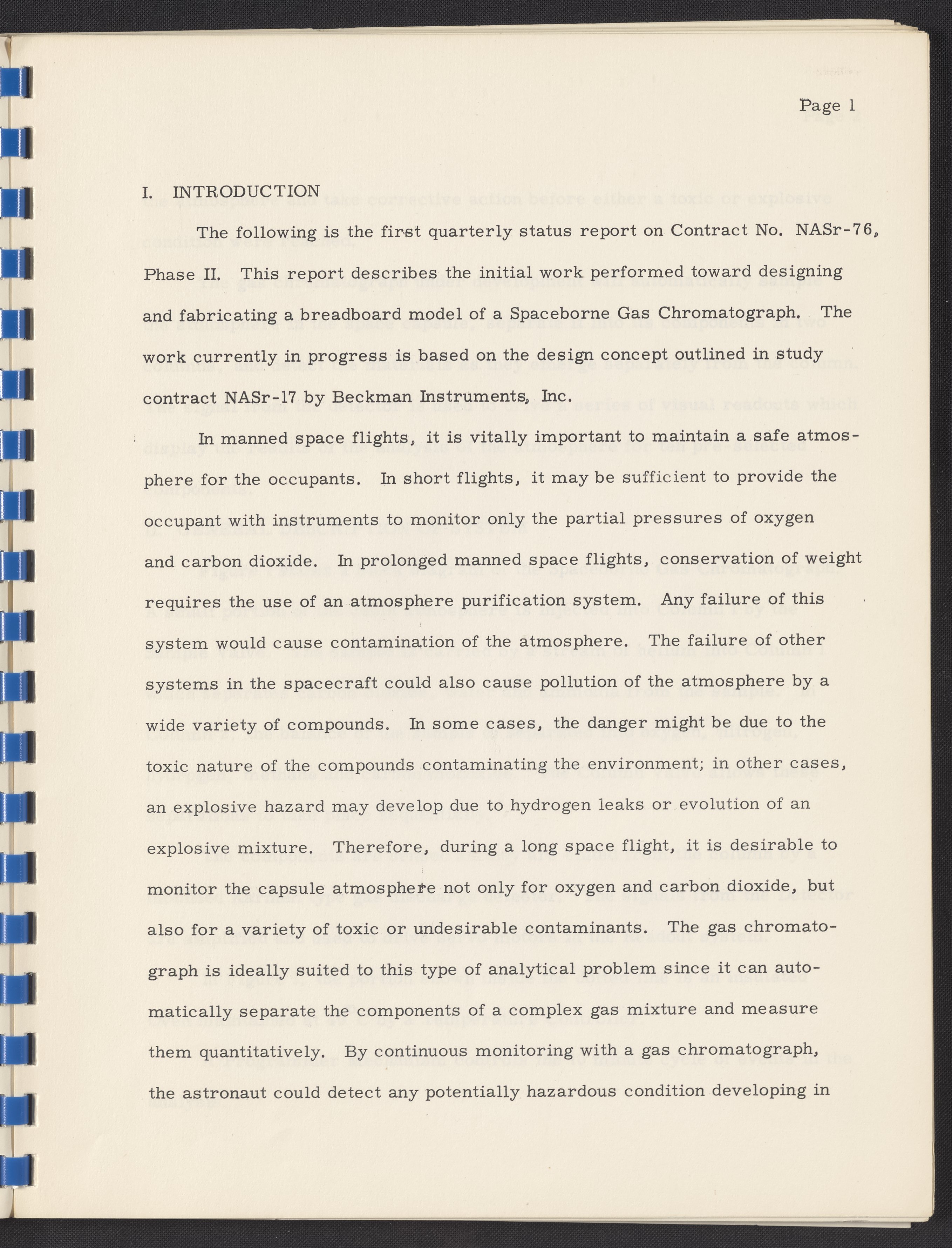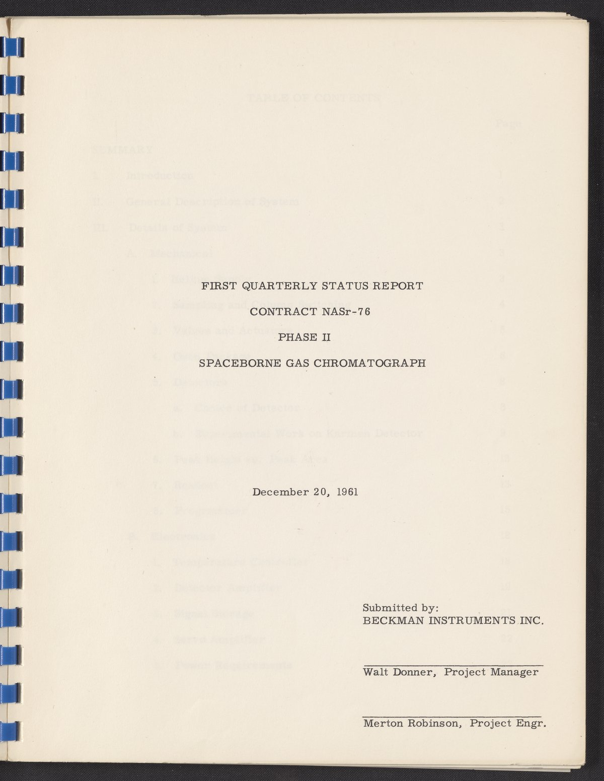 First Quarterly Status Report: Contract NASr-76, Phase II, Spaceborne Gas Chromatograph