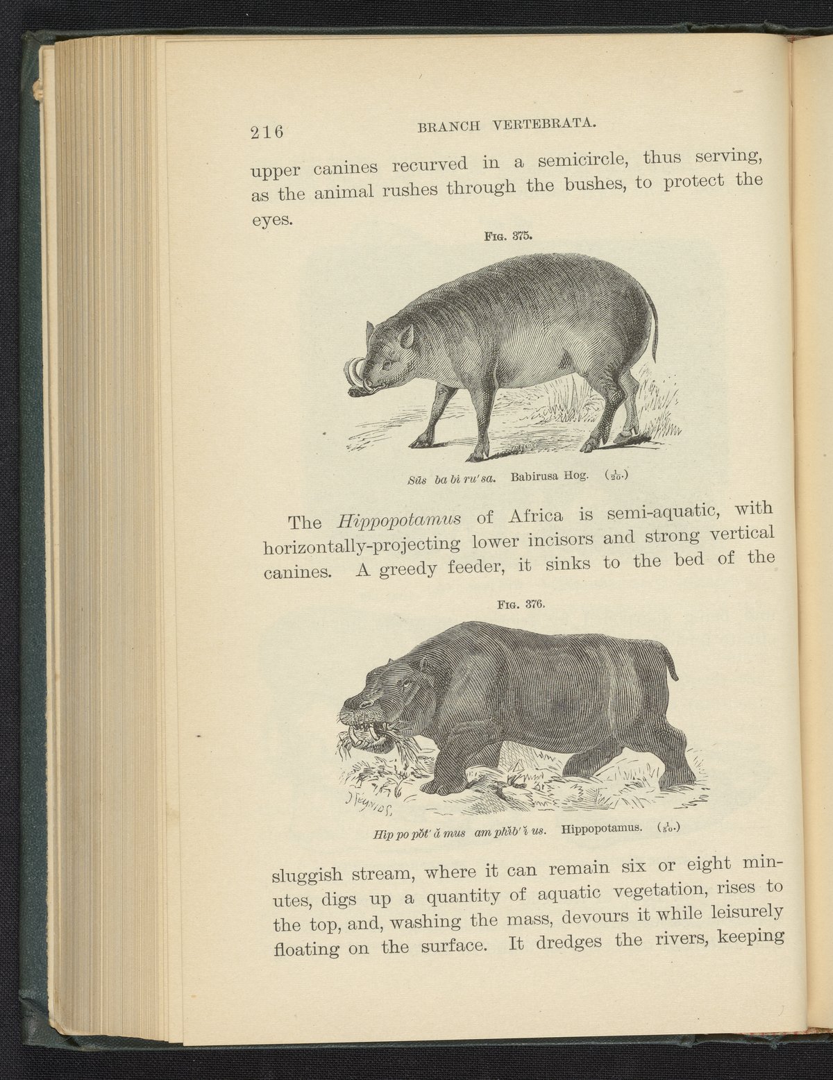 Figure 375. Babirusa Hog. Figure 376. Hippopotamus