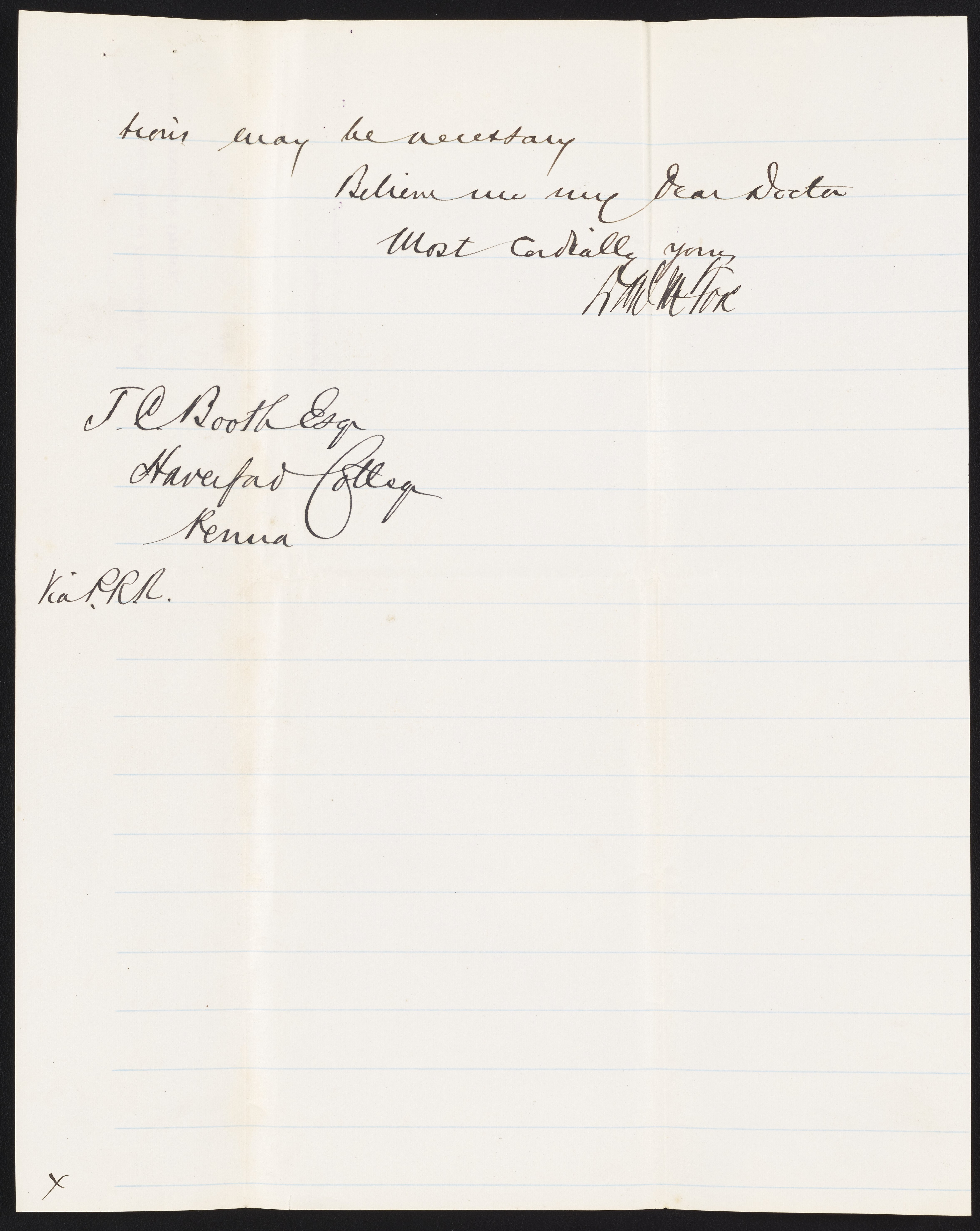 Small JPG1200 x 1497px — 270 KBLarge JPG2880 x 3593px — 1.5 MBFull-sized JPG4741 x 5914px — 3.9 MBOriginal fileTIFF — 4741 x 5914px — 80.3 MBDaniel M. Fox (1819-1890), Superintendent of the Mint of the United States at Philadelphia, writes again to James Curtis Booth (1810-1888) following his letter of December 15, to enquire on the states of Booth's health and his slow recovery.