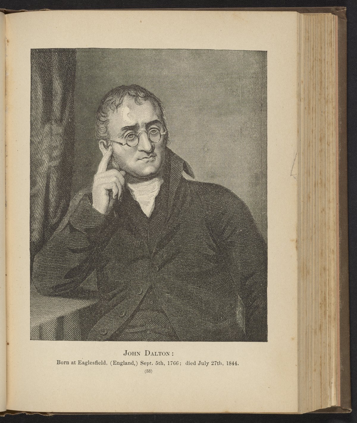 Appleton, John Howard. “Portrait of John Dalton.” Chemistry, Developed by Facts and Principles Drawn Chiefly from the Non-Metals. Providence, Rhode Island: Providence Lithograph Company, 1884. Science History Institute. Philadelphia. https://digital.sciencehistory.org/works/g434ew5.