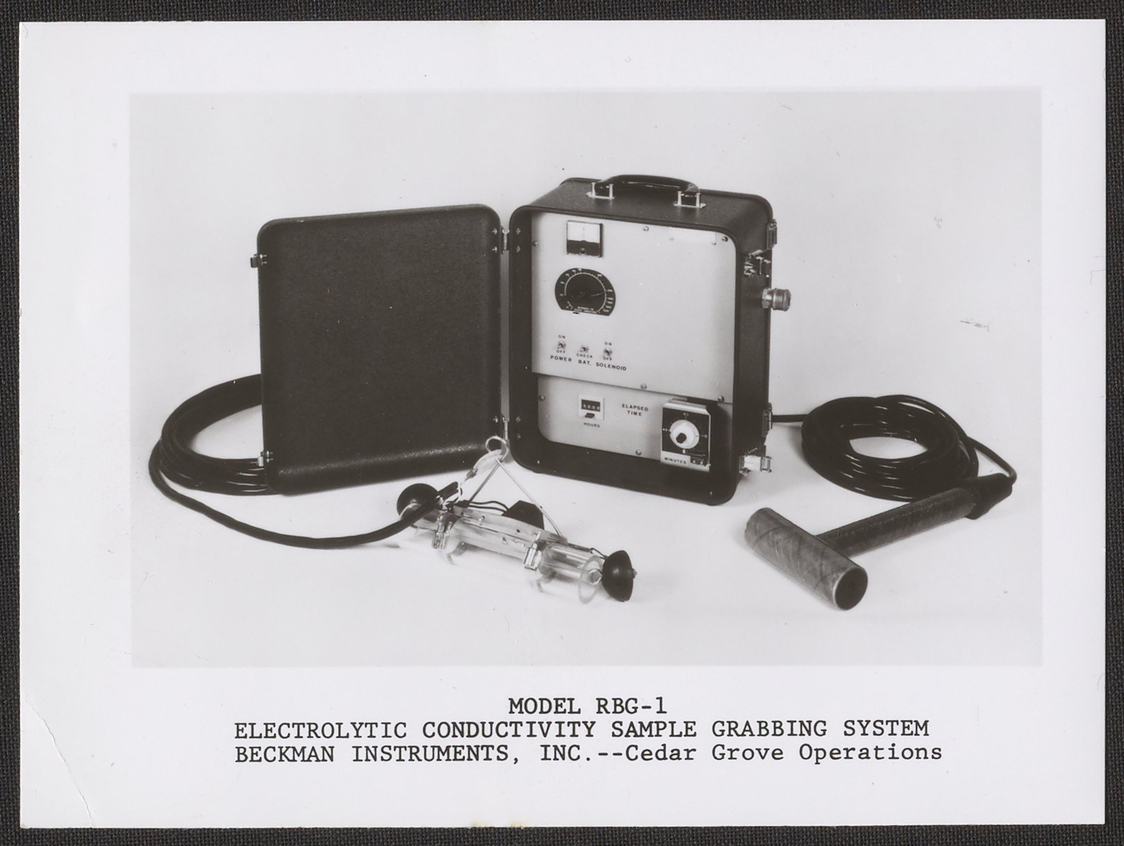 “Beckman Model RBG-1 Electrolytic Conductivity Sample Grabbing System,” n.d. Beckman Historical Collection, Box 84. Science History Institute. Philadelphia. https://digital.sciencehistory.org/works/g445cd36m.