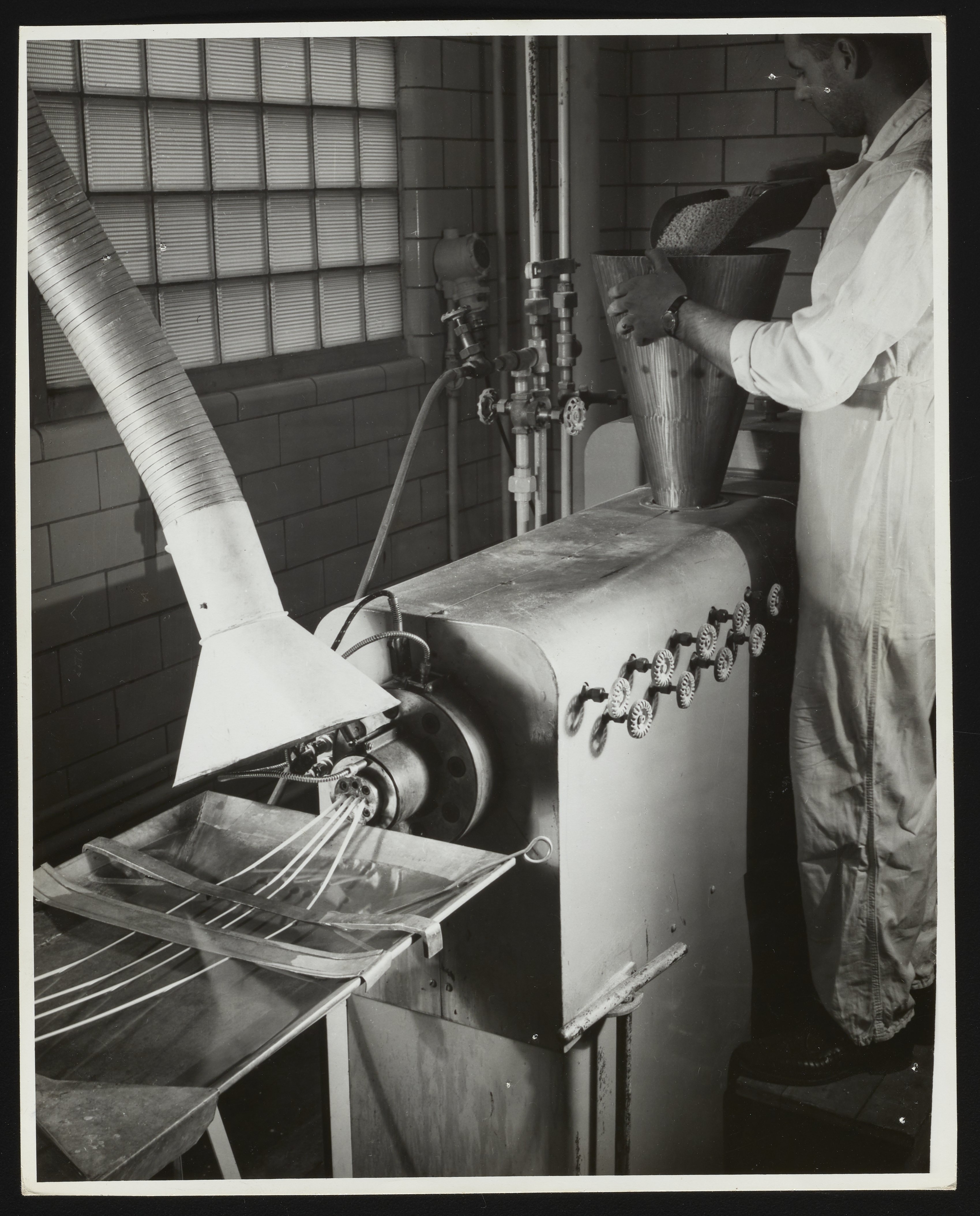 Employee using extruder at Hercules Parlin plant