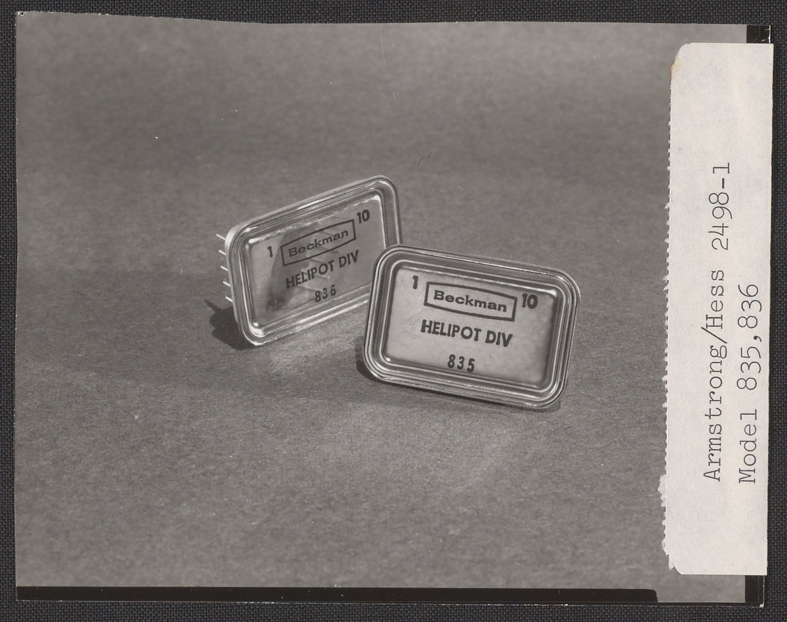 Armstrong & Hess. “Helipot Hermetic Sealed Regulators Models 835 and 836,” 1950–1969. Beckman Historical Collection, Box 85. Science History Institute. Philadelphia. https://digital.sciencehistory.org/works/g732d929f.