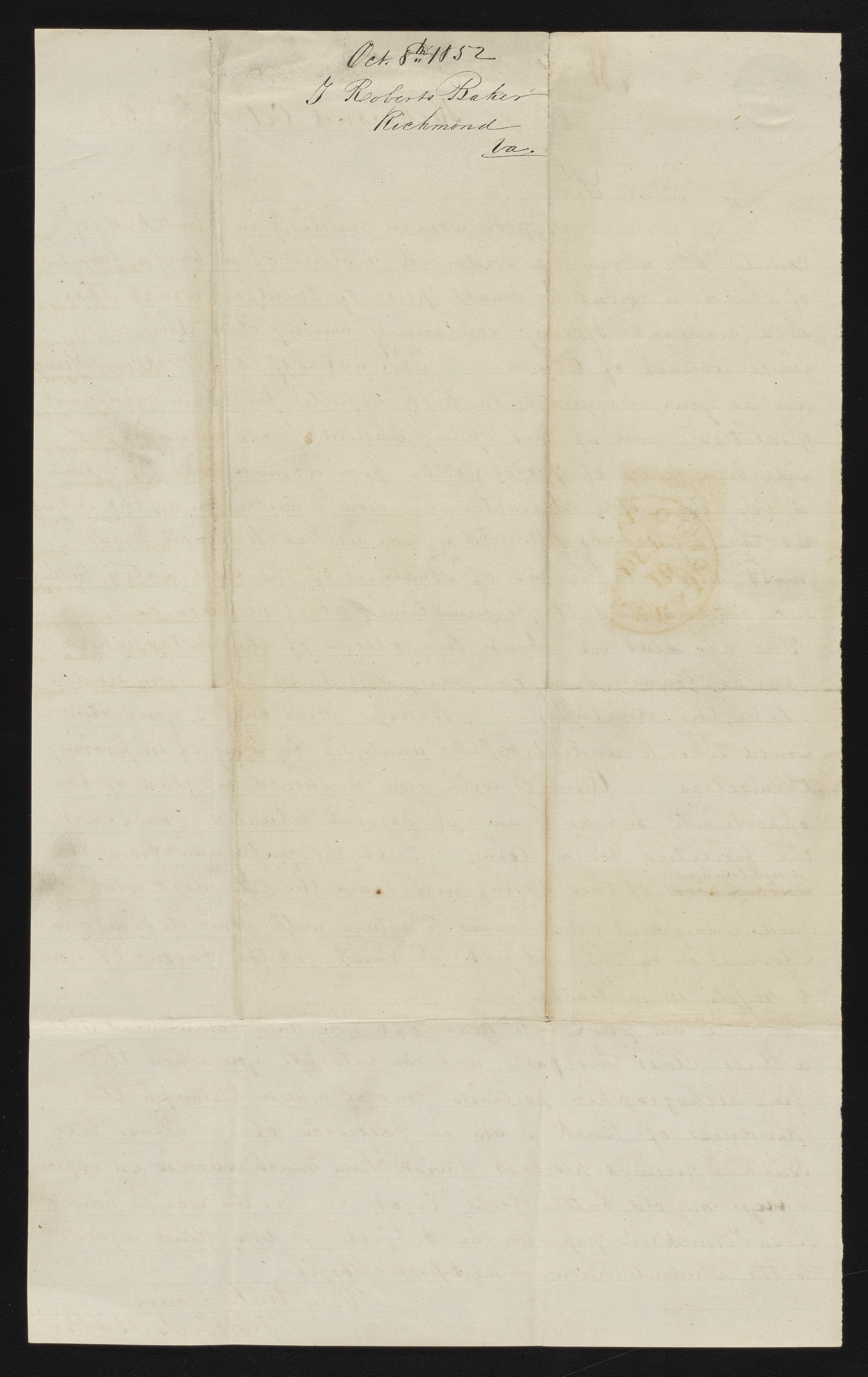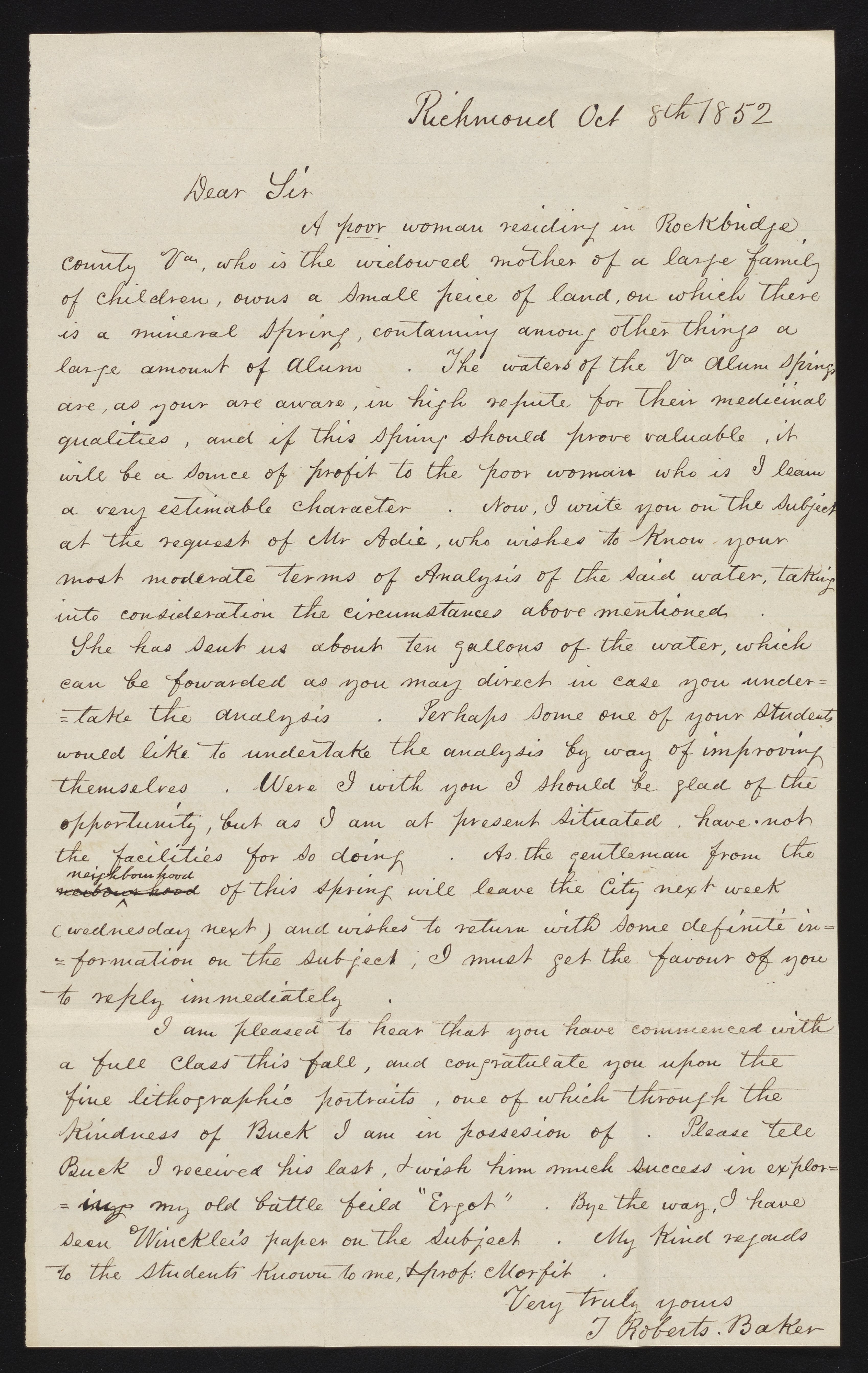 Letter from T. Roberts Baker to James C. Booth, October 8, 1852