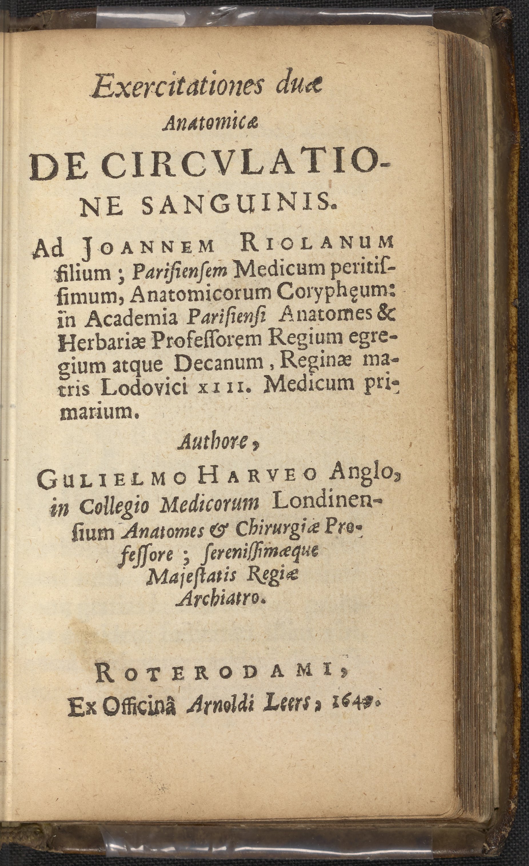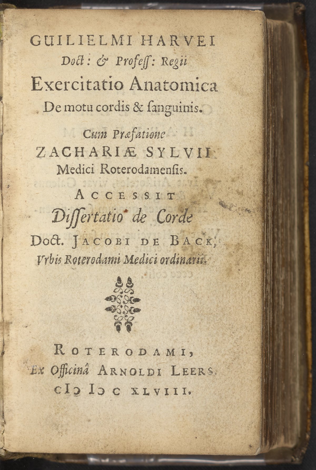 Harvey, William. Guilielmi Harvei Doct. & Profess. Regii Exercitatio Anatomica De Motu Cordis & Sanguinis. Rotterdam, Netherlands: Ex Officinâ Arnoldi Leers, 1648. https://digital.sciencehistory.org/works/gc0kwhc.