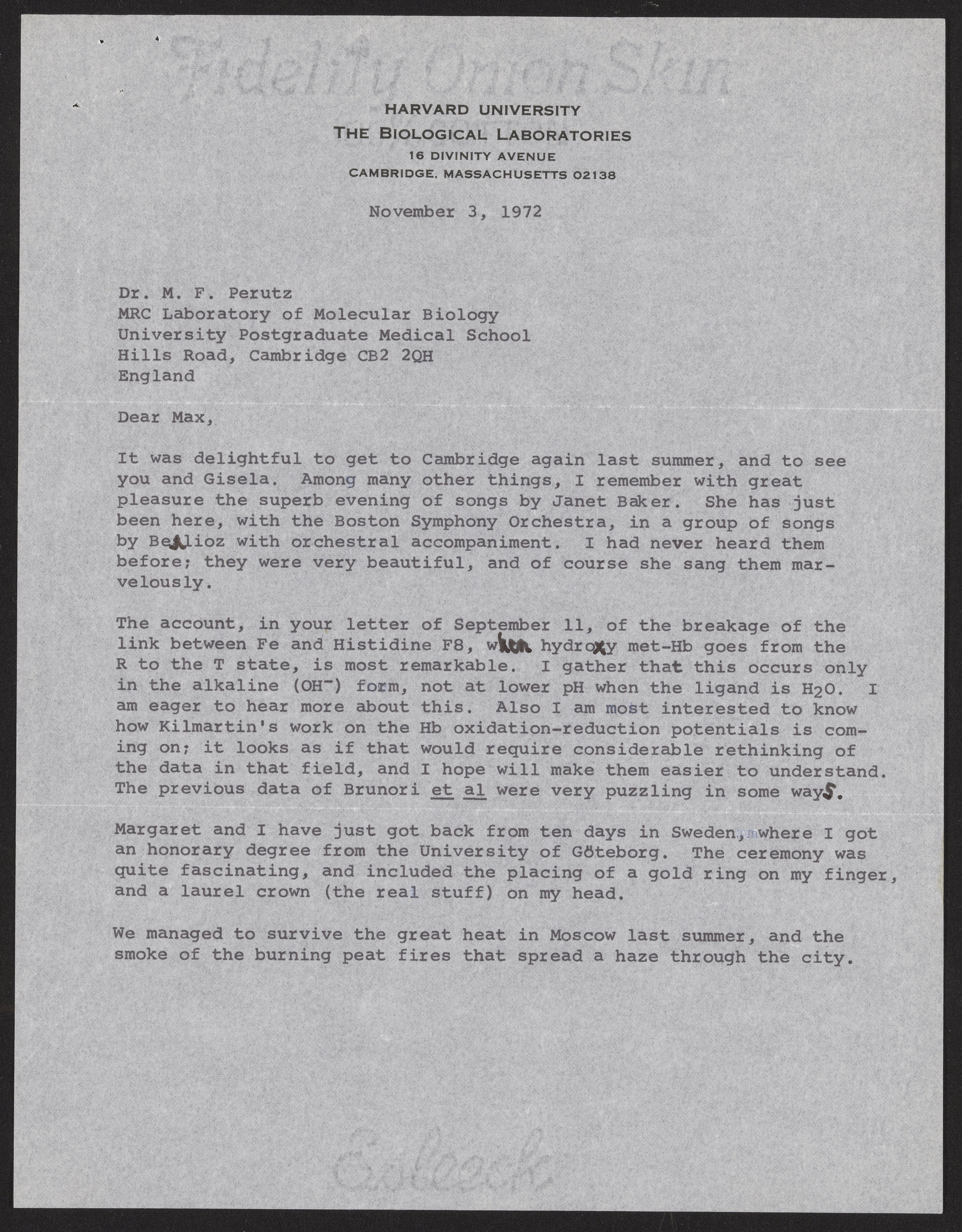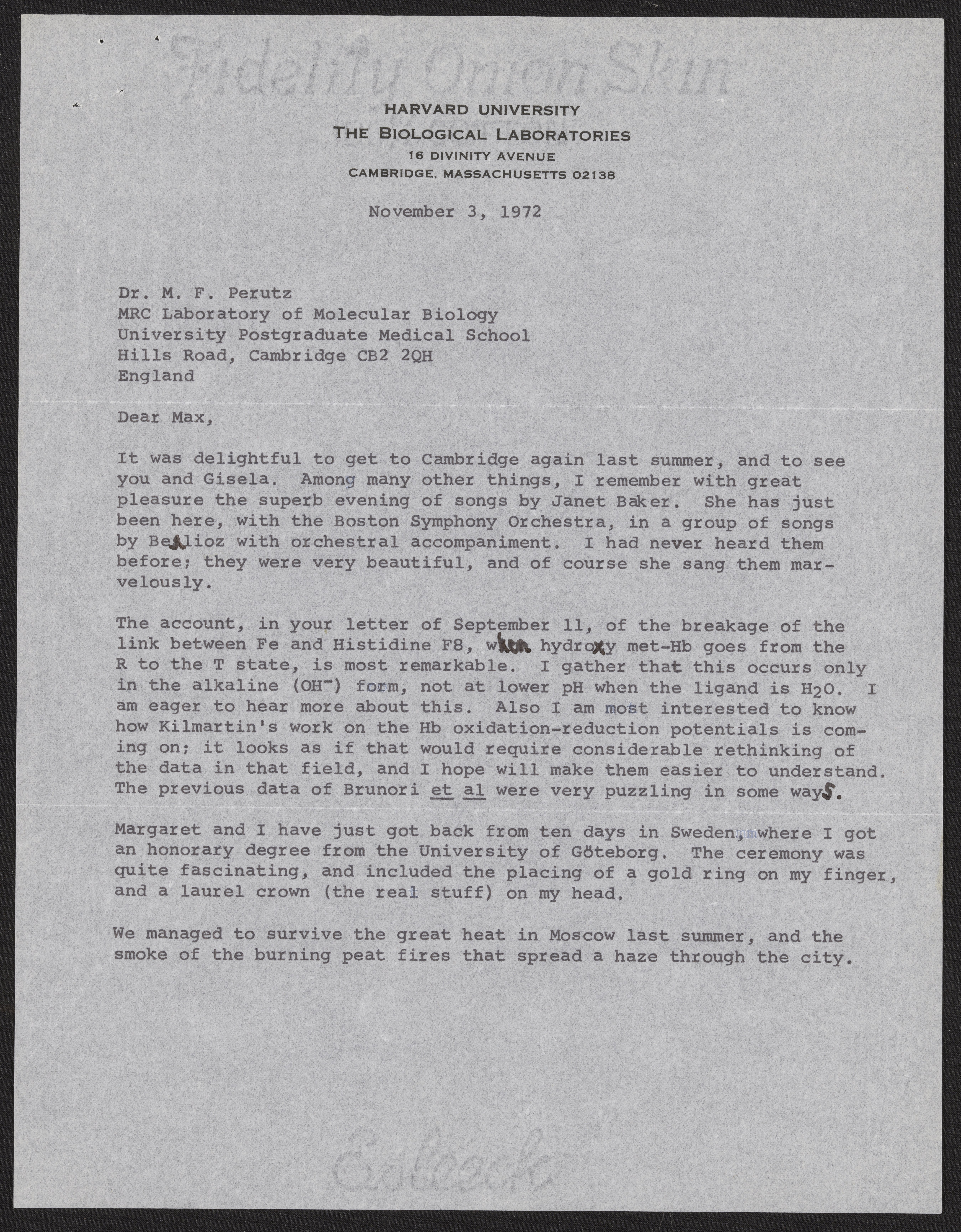 Edsall, John T. (John Tileston). “Letter from John T. Edsall to Max Perutz, November 3, 1972,” November 3, 1972. History of Molecular Biology Collection, Box 74, Folder 12. Science History Institute. Philadelphia. https://digital.sciencehistory.org/works/gc9i3v7.