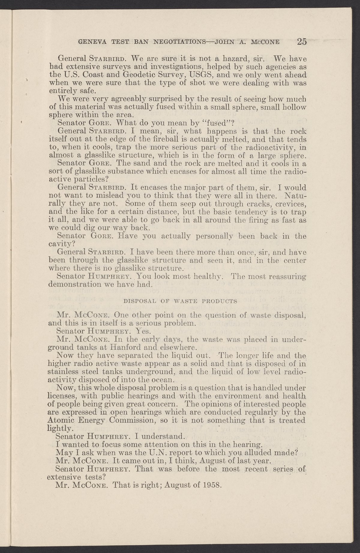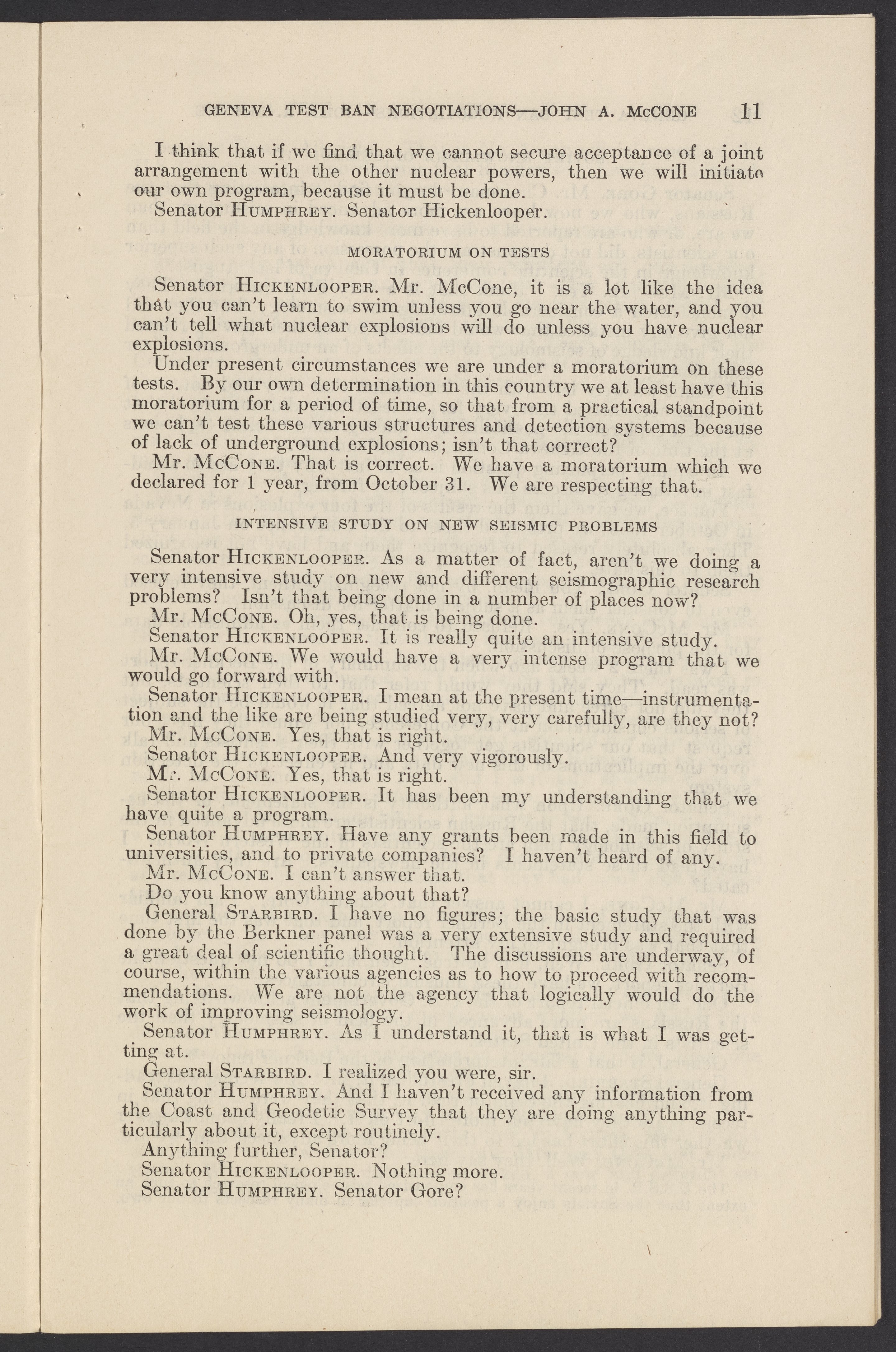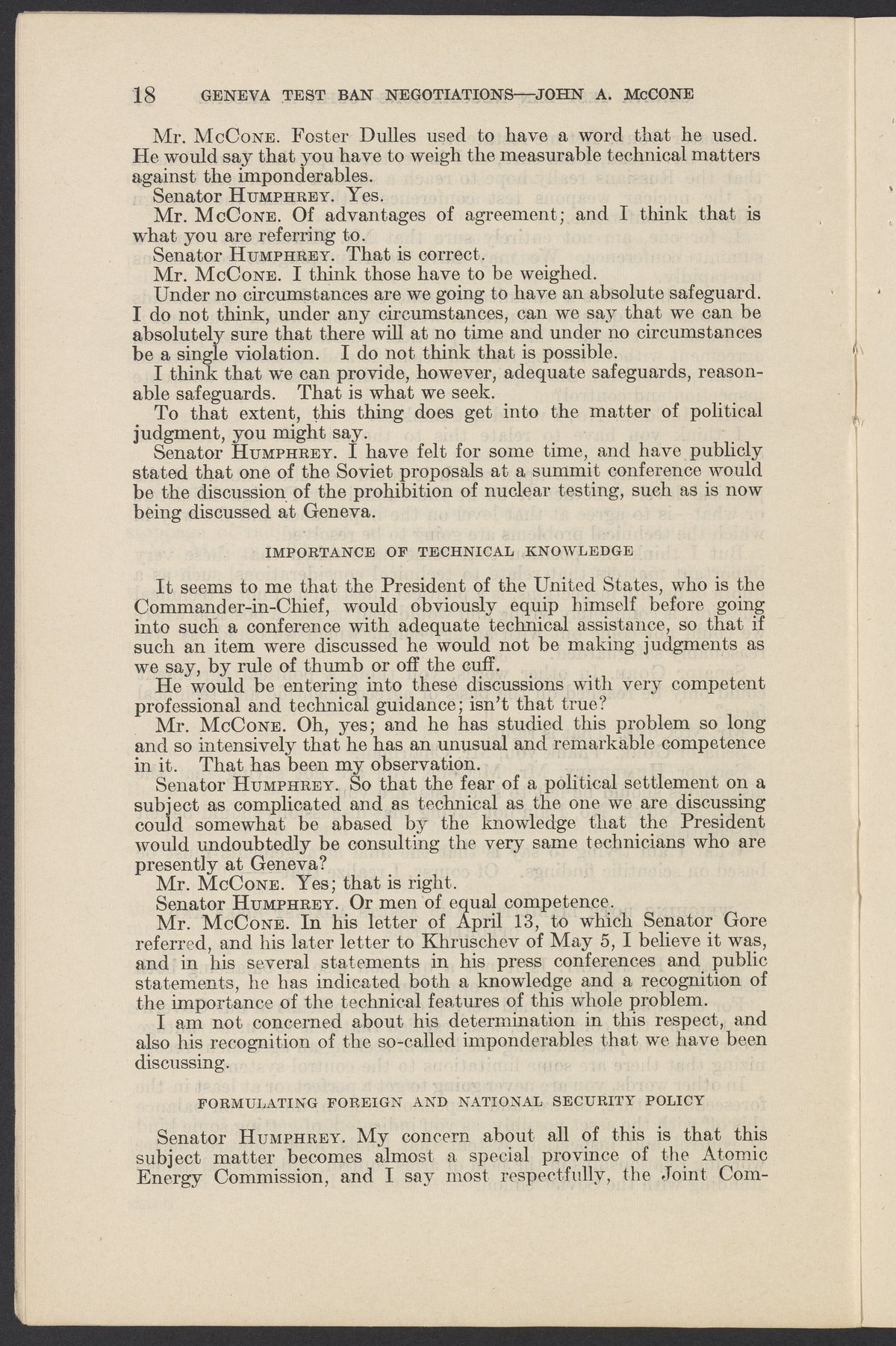 Small JPG1200 x 1831px — 279 KBLarge JPG2880 x 4394px — 1.5 MBFull-sized JPG3774 x 5758px — 2.4 MBOriginal fileTIFF — 3774 x 5758px — 62.2 MBTestimony of John A. McCone (1902-1991), chair of the Atomic Energy Commission (AEC), on Geneva test ban negotiation, given in hearing before the Subcommittee on Disarmament of the Committee on Foreign Relations, United States Senate.