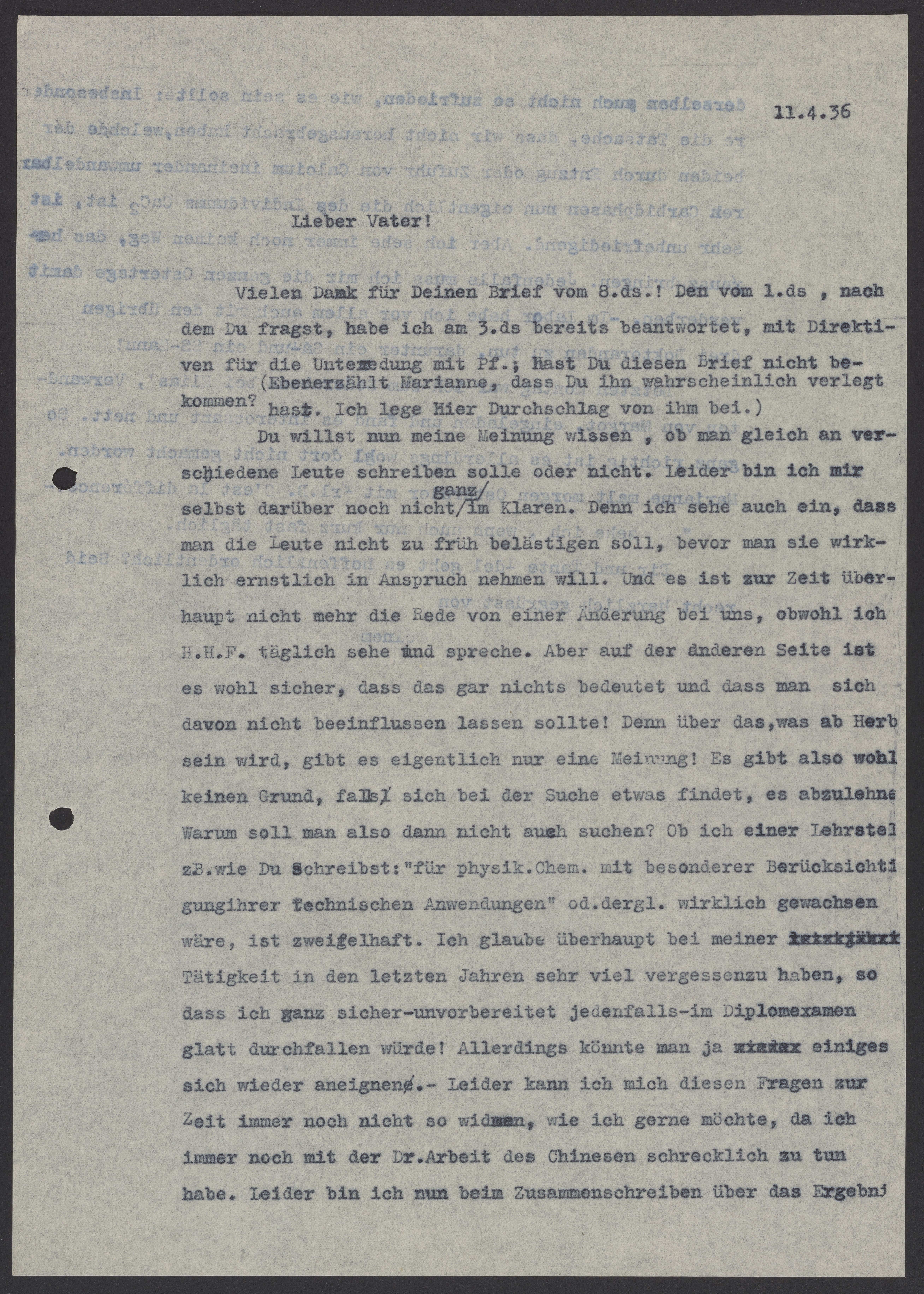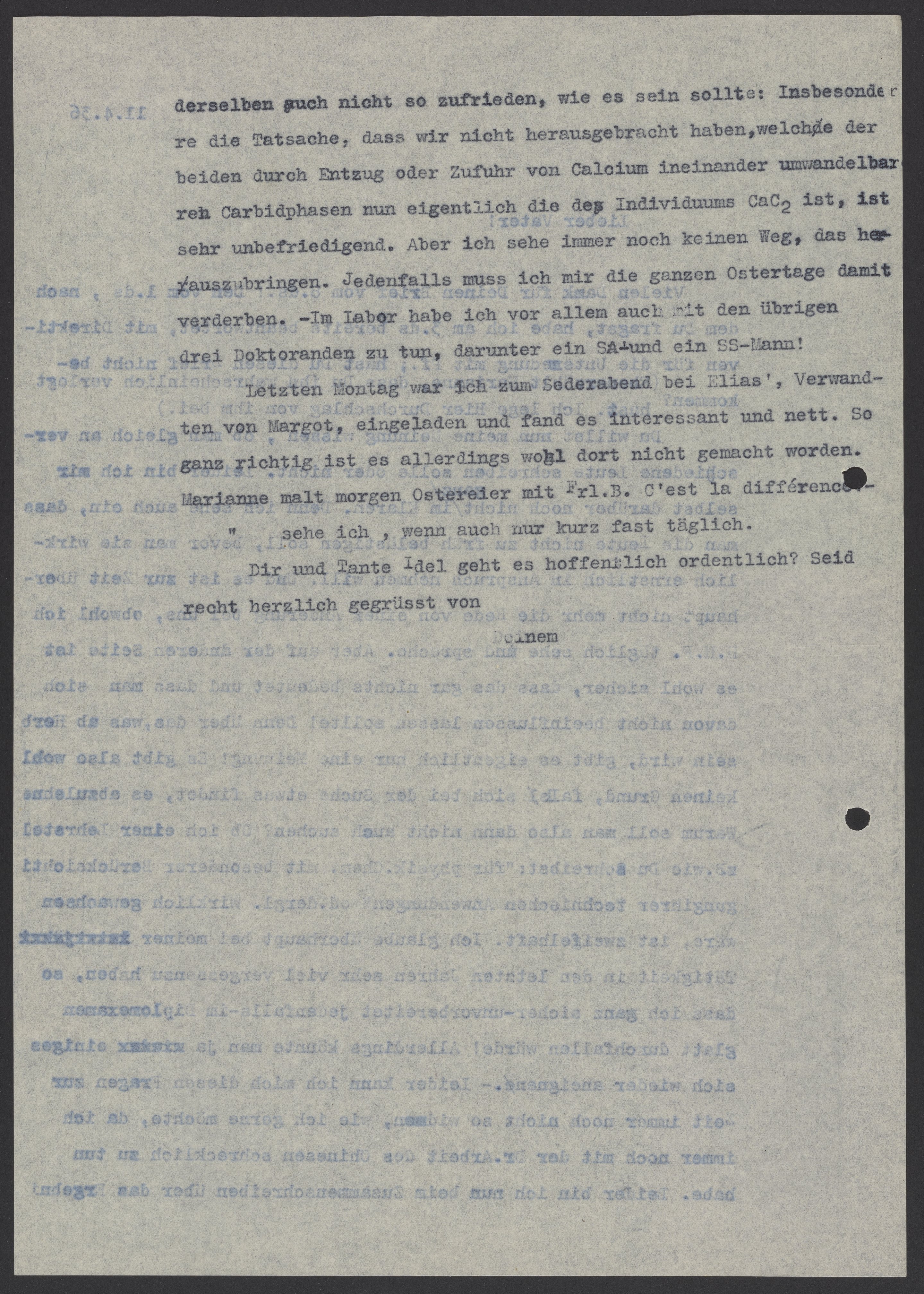Letter from Max Bredig to Georg Bredig, April 11, 1936