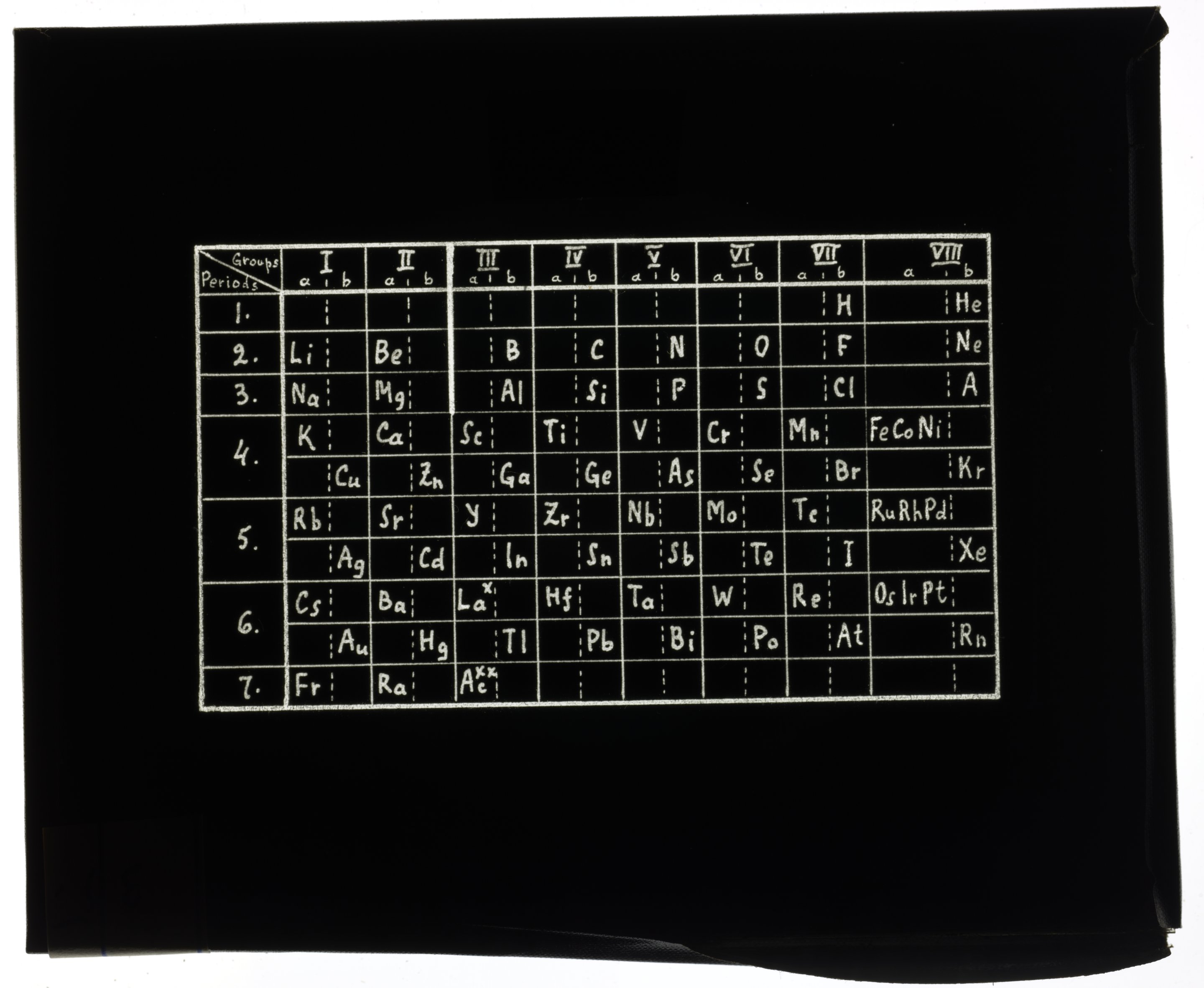 Unsymmetrical series table with elements of short periods placed in different subgroups