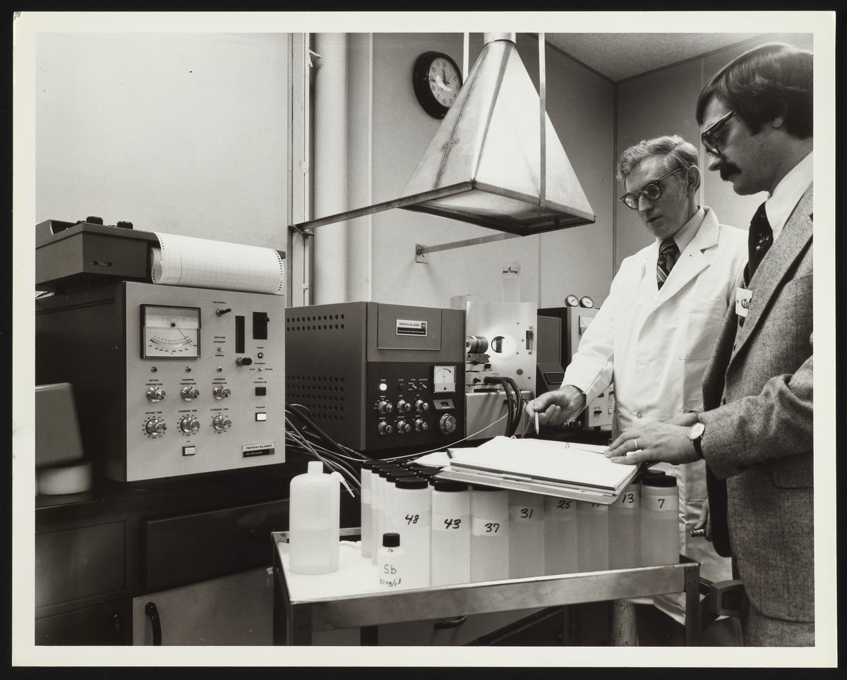 Perkin-Elmer Corporation. “Perkin-Elmer Atomic Absorption Spectrophotometer in Use at Detroit Edison Company,” 1970–1979. Photographs from the Perkin-Elmer-Applera Collection, Box 4. Science History Institute. Philadelphia. https://digital.sciencehistory.org/works/gh93h035j.