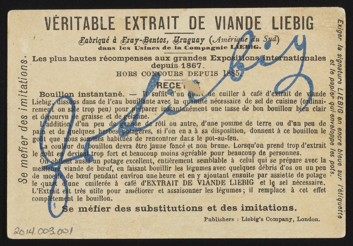 “Trade Card for Véritable Extrait De Viande Liebig [Real Liebig Meat Extract] with Lion Chase in Africa.” Lithographic ink. London, England: Liebig's Extract of Meat Company, 1903. Science History Institute. Philadelphia. https://digital.sciencehistory.org/works/gh93h0704.