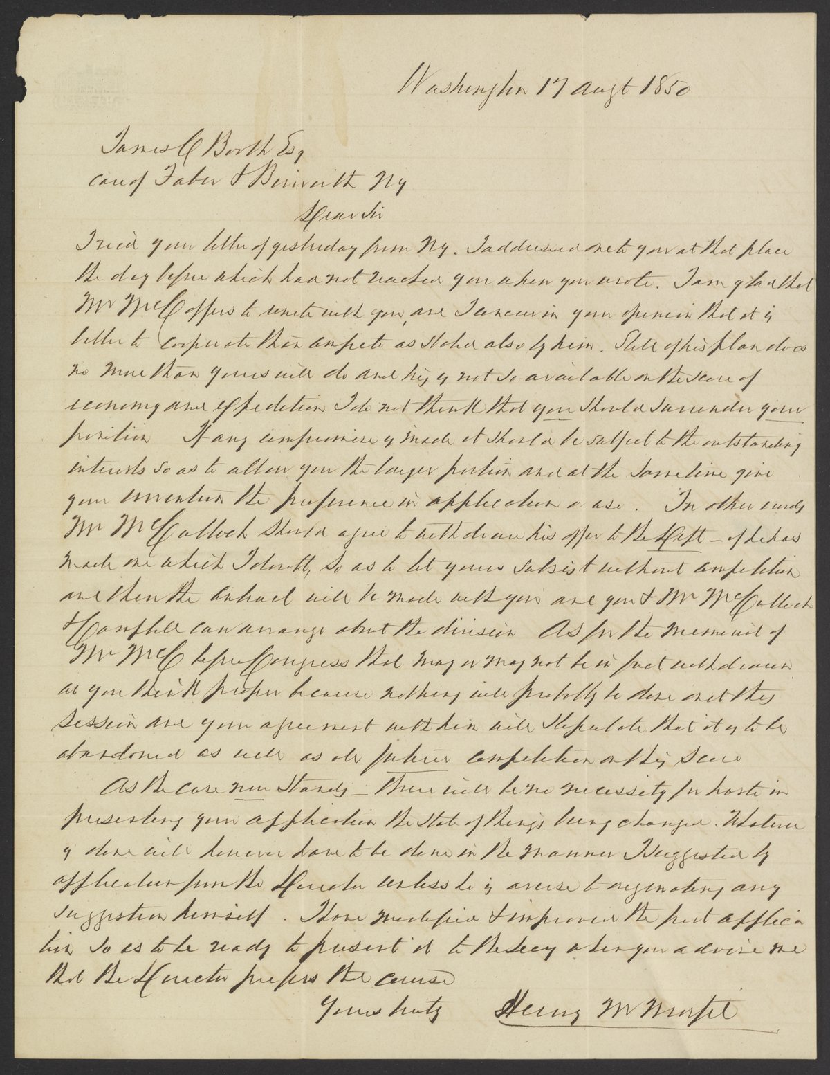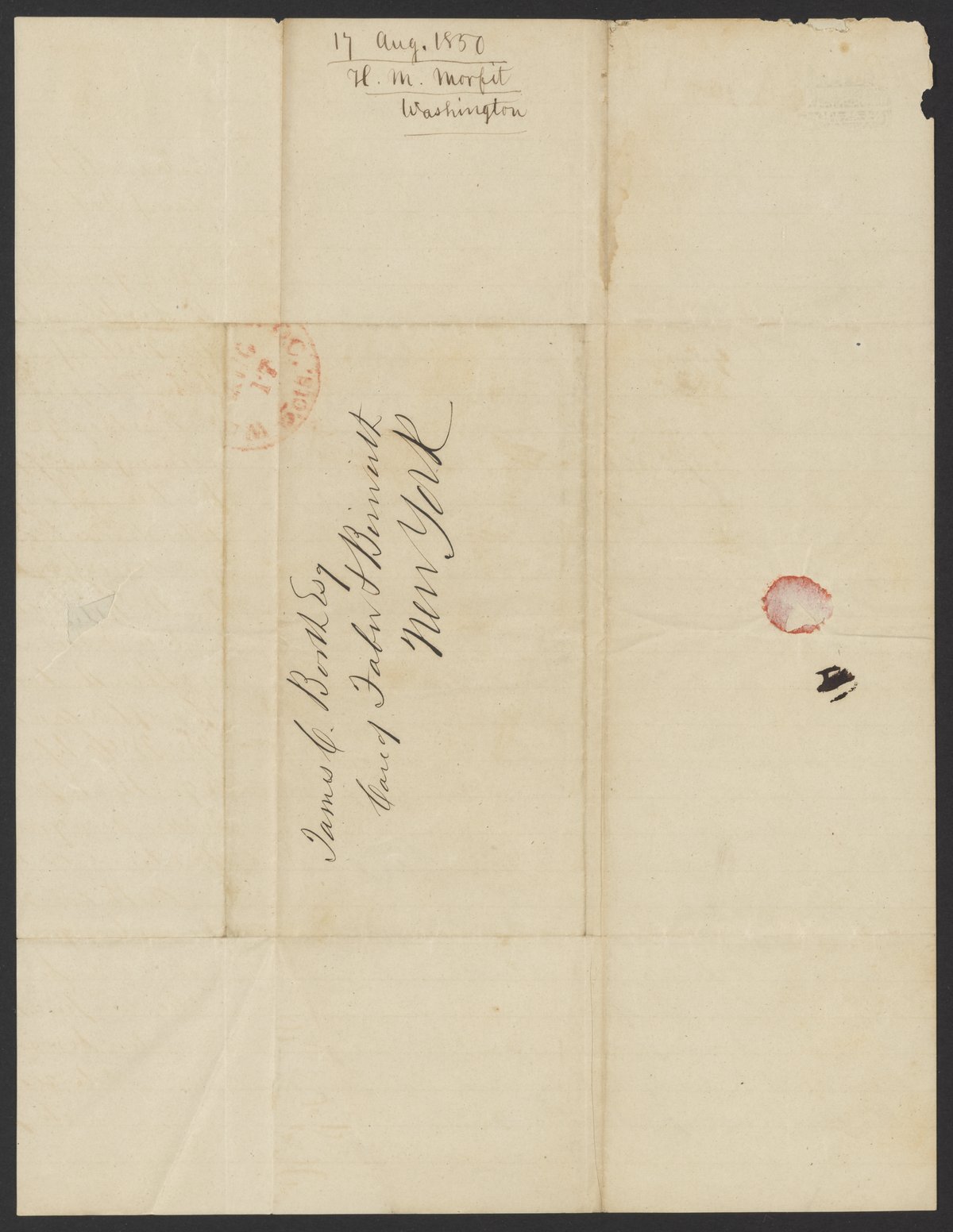 Letter from Henry M. Morfit to James Curtis Booth, August 17, 1850