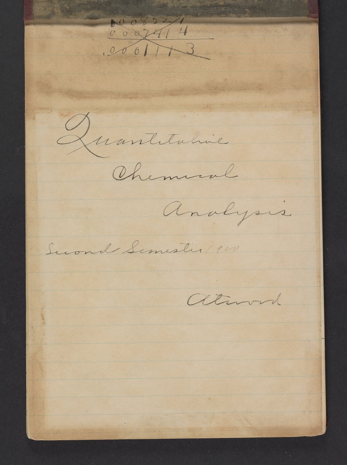 Atwood, Frederick Edwin. “Quantitative Chemical Analysis Notes Taken by Frederick Edwin Atwood,” 1900. Science History Institute. Philadelphia. https://digital.sciencehistory.org/works/glgu4t1.
