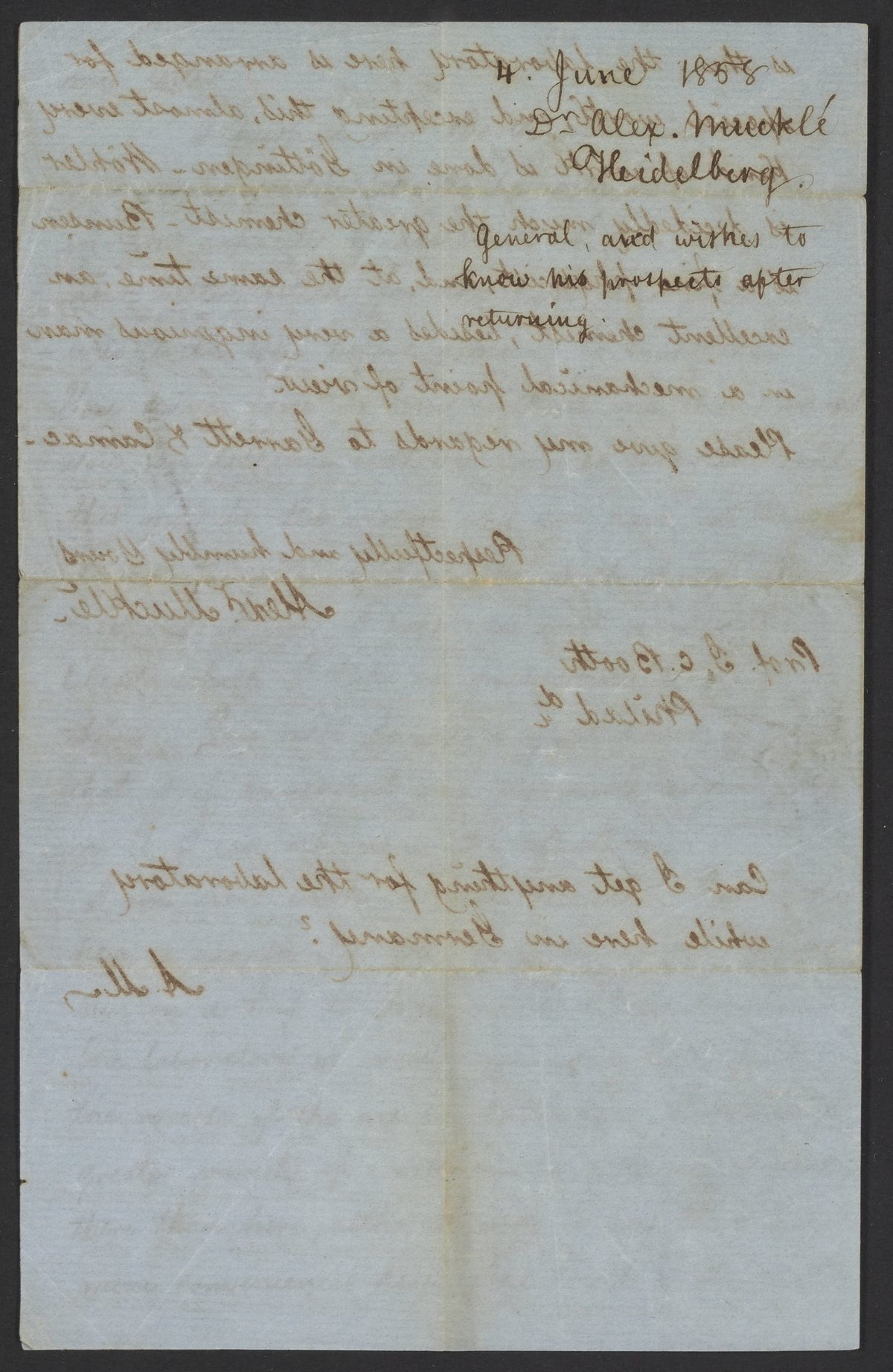 Letter from Dr. Alex Muckle to James Curtis Booth, June 4, 1858