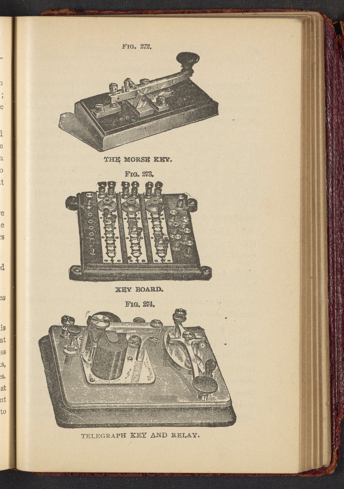 Fig. 272: The Morse Key; Fig. 273: Key Board; and Fig. 274: Telegraph Key and Relay