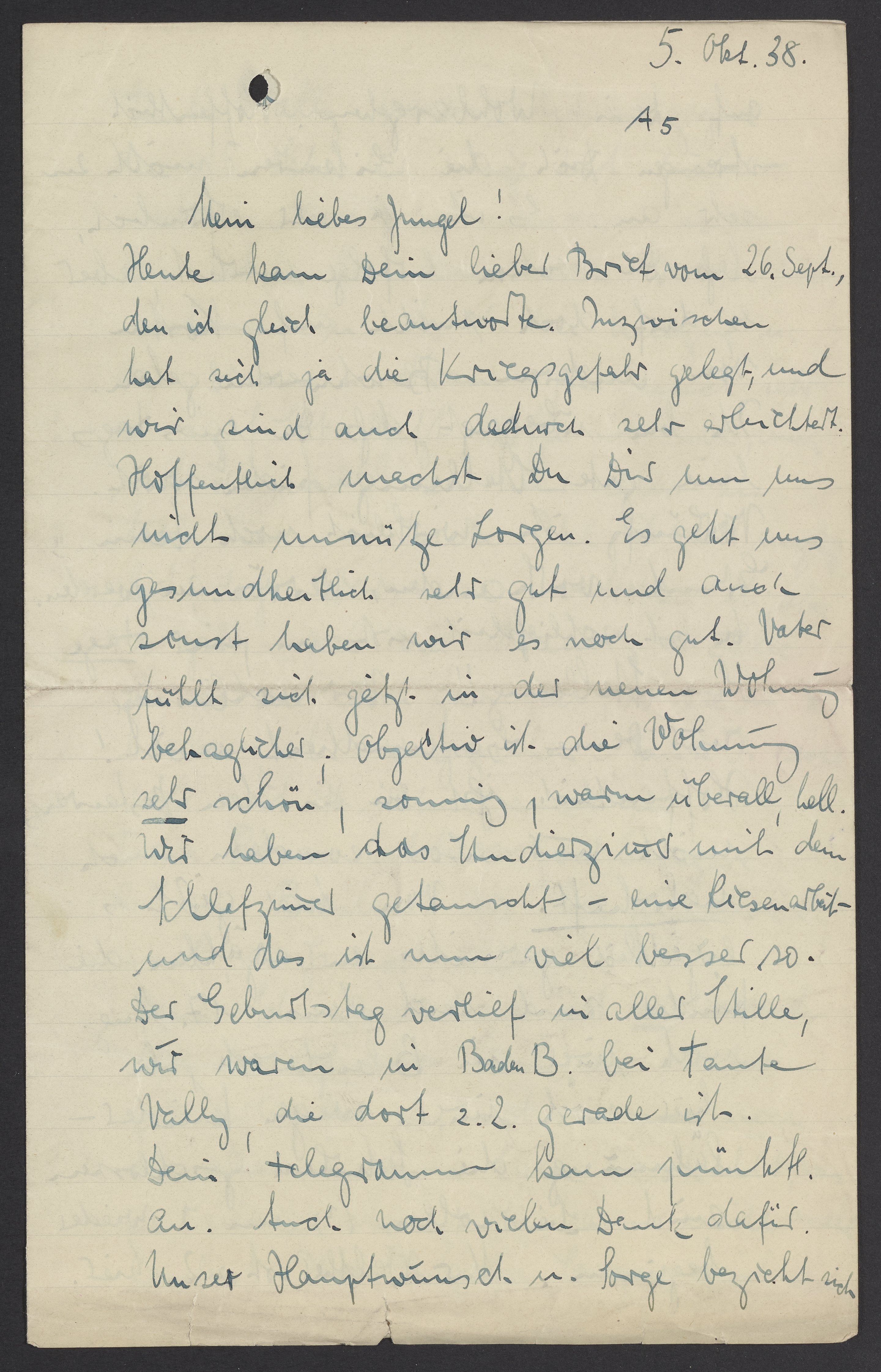 Letter from Marianne Homburger, Viktor Homburger, and Georg Bredig to Max Bredig, October 5, 1938