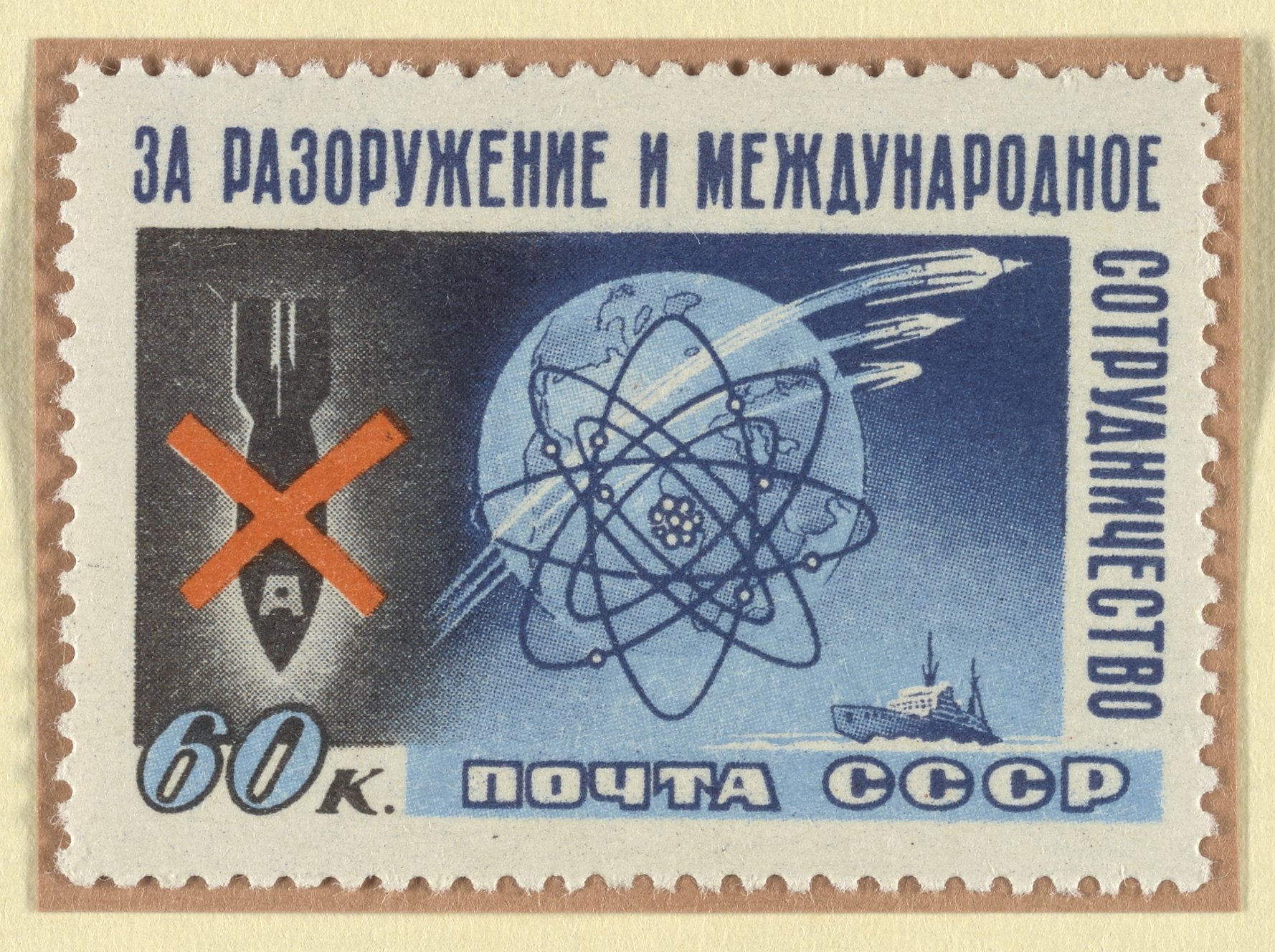 “Soviet Postage Stamp Commemorating the Conference on the Peaceful Uses of Atomic Energy, 1958.” Soviet Union, n.d. Witco Stamp Collection, Box 4. Science History Institute. Philadelphia. https://digital.sciencehistory.org/works/gq67jr209.
