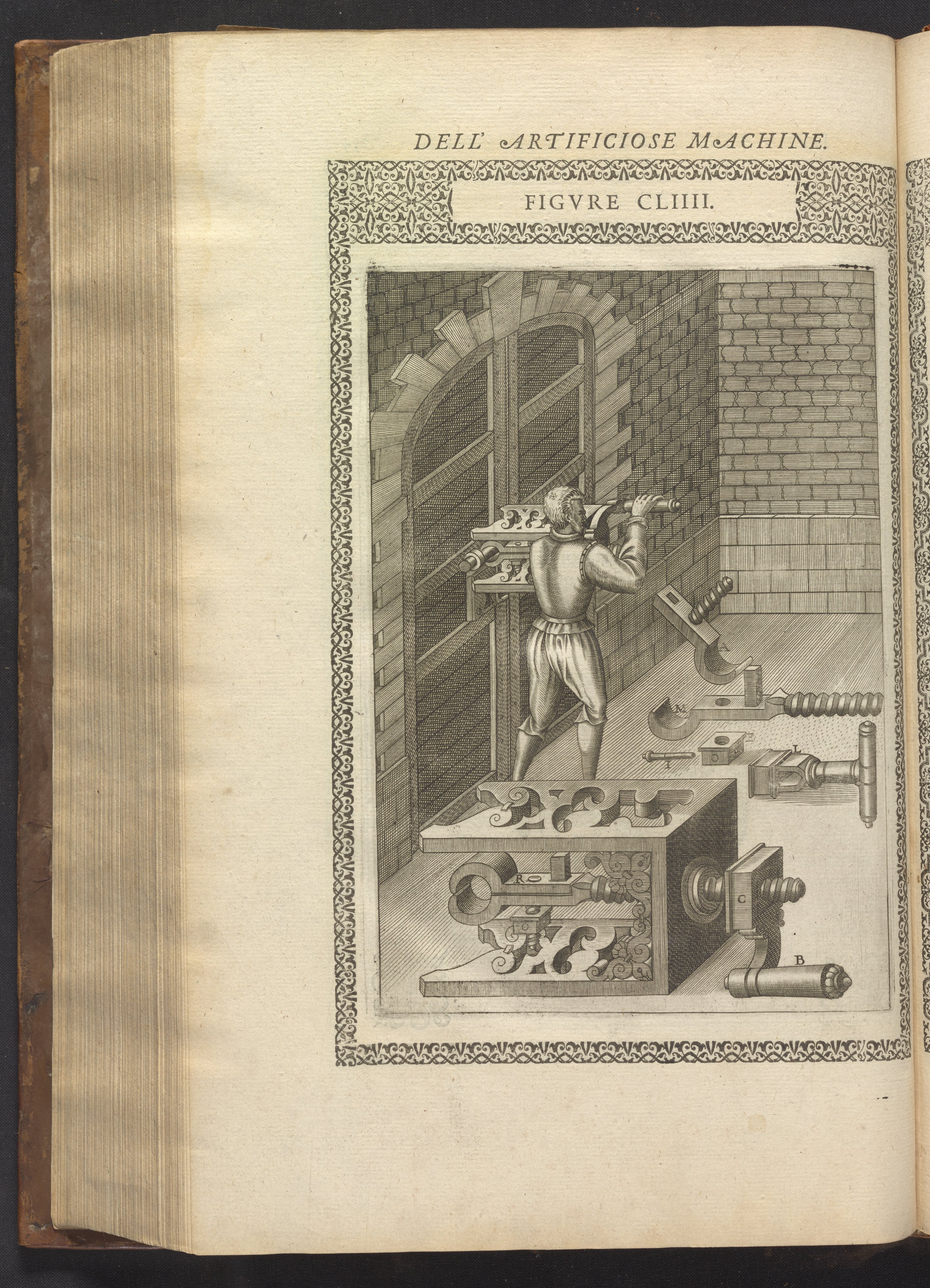 Ramelli, Agostino. “Plate 154: For Breaking the Bolt off a Door.” In Le Diverse Et Artificiose Machine Del Capitano Agostino Ramelli. Paris, France, 1588. https://digital.sciencehistory.org/works/gq67jr42b.