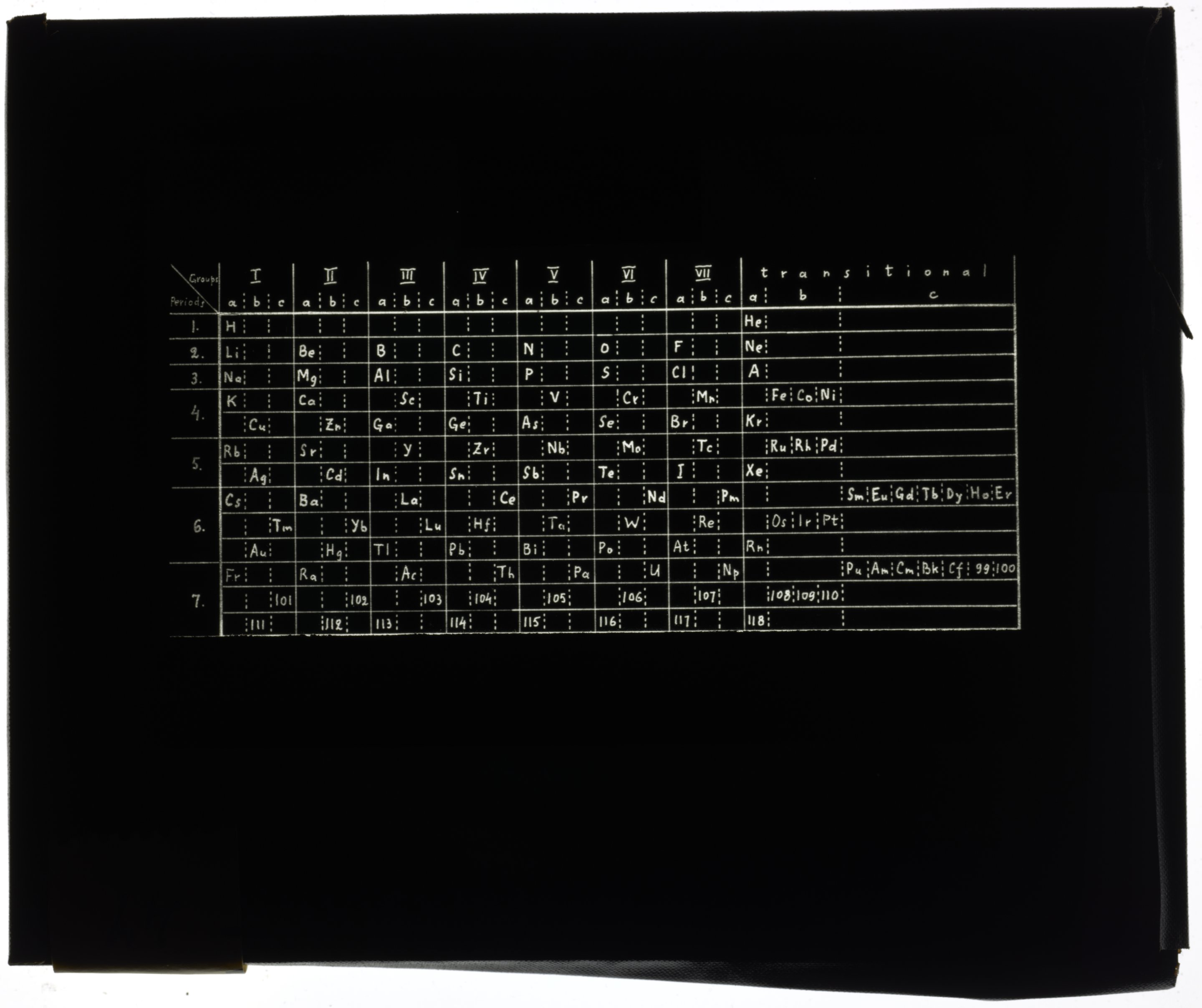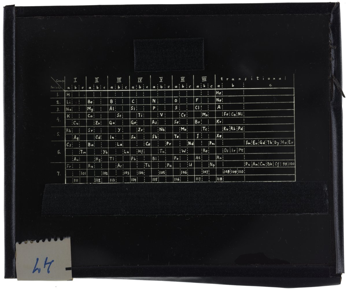 Mazurs, Edward G. “Series Table with Rare Earth Elements Placed in One Series.” Glass (material), circa 1955–1957. Edward G. Mazurs Collection of Periodic Systems Images, Box 1. Science History Institute. Philadelphia. https://digital.sciencehistory.org/works/gt54kn52t.
