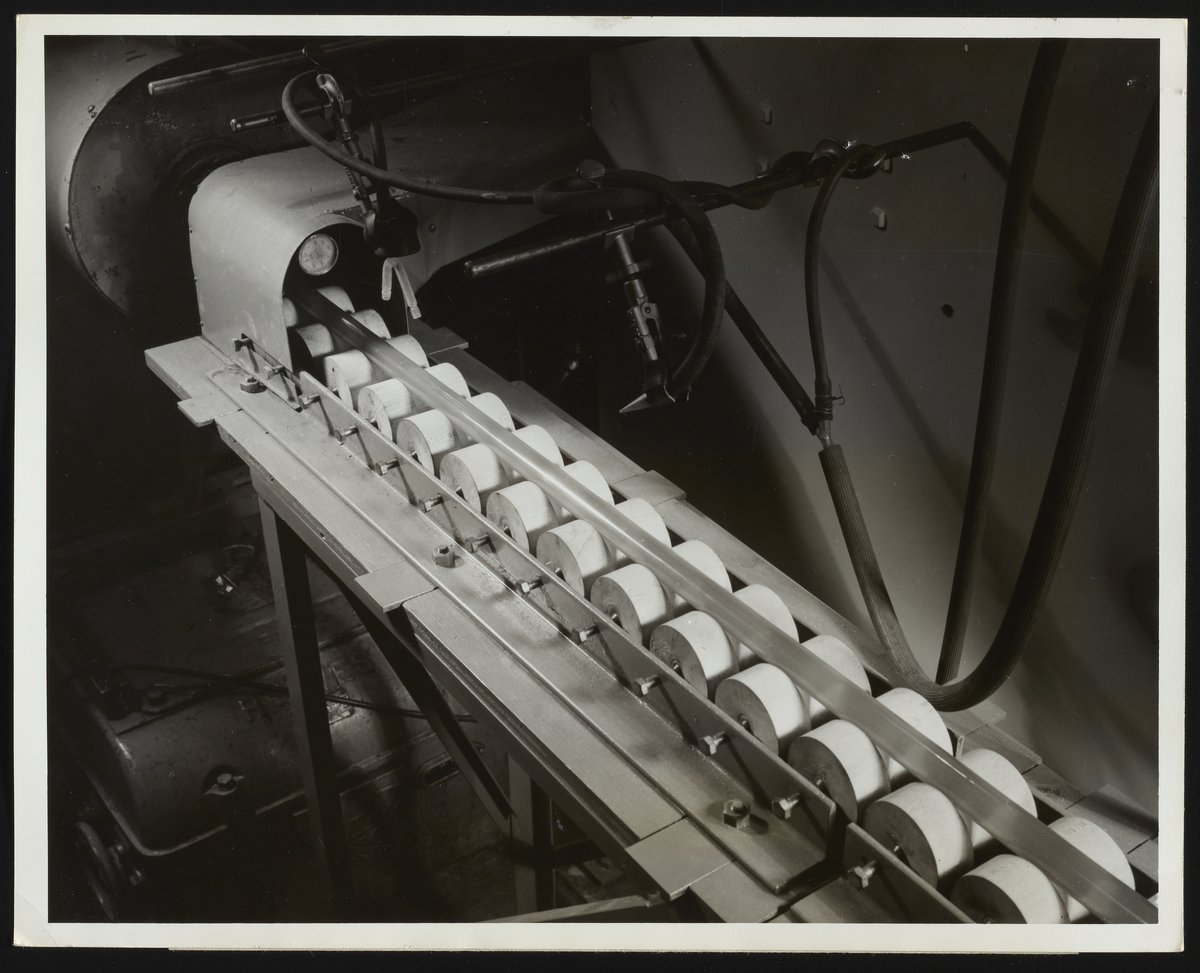 Hercules Incorporated. “Take-off Jig at Hercules Parlin Plant,” January 1949. Photographs from the Records & Ephemera of Hercules Incorporated, Box 2, Folder 25. Science History Institute. Philadelphia. https://digital.sciencehistory.org/works/gt54kn59r.