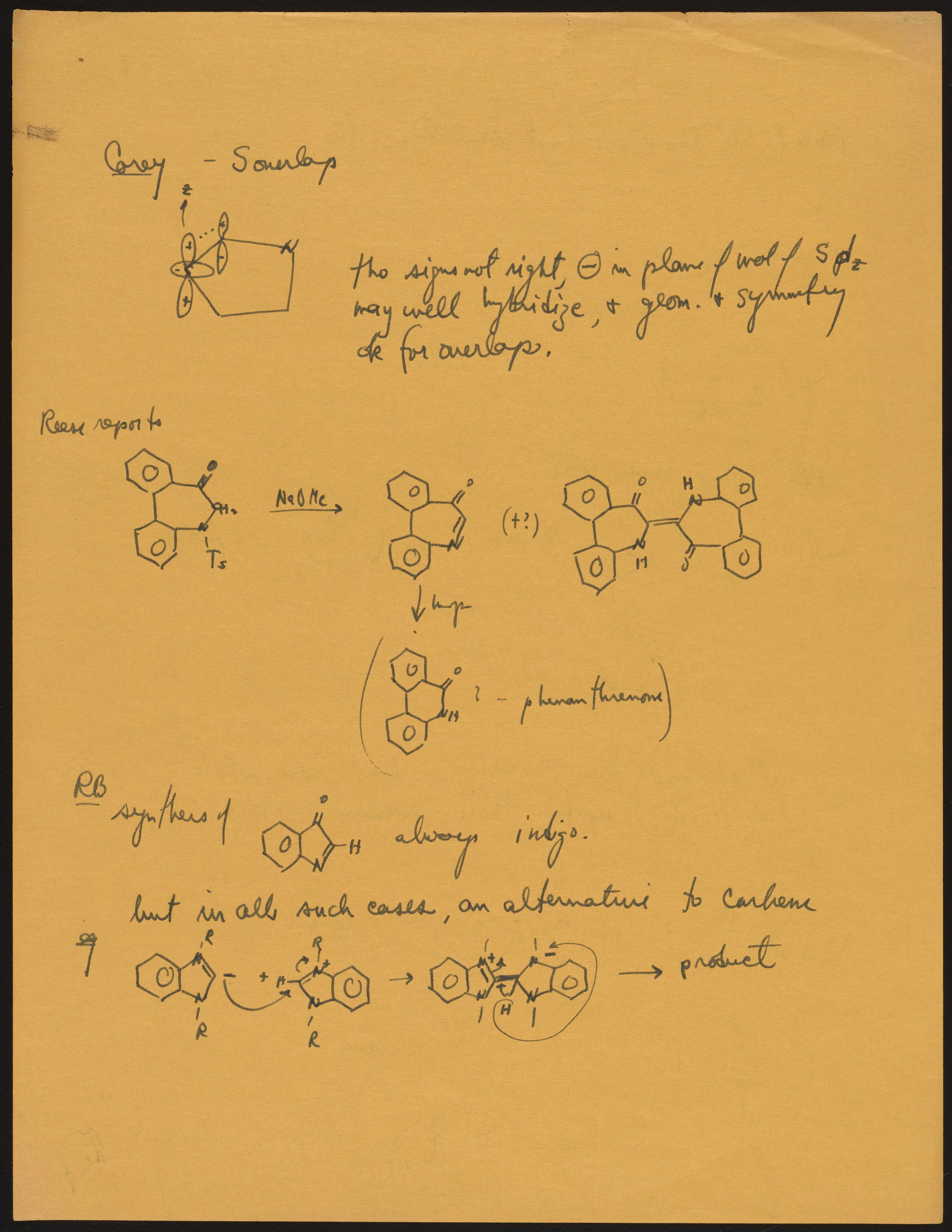 Kohler, Robert E. “Miscellaneous Pages from R. B. (Robert Burns) Woodward Seminars,” circa 1959–1966. Robert E. Kohler Papers, Folder 2. Science History Institute. Philadelphia. https://digital.sciencehistory.org/works/gt54kn932.