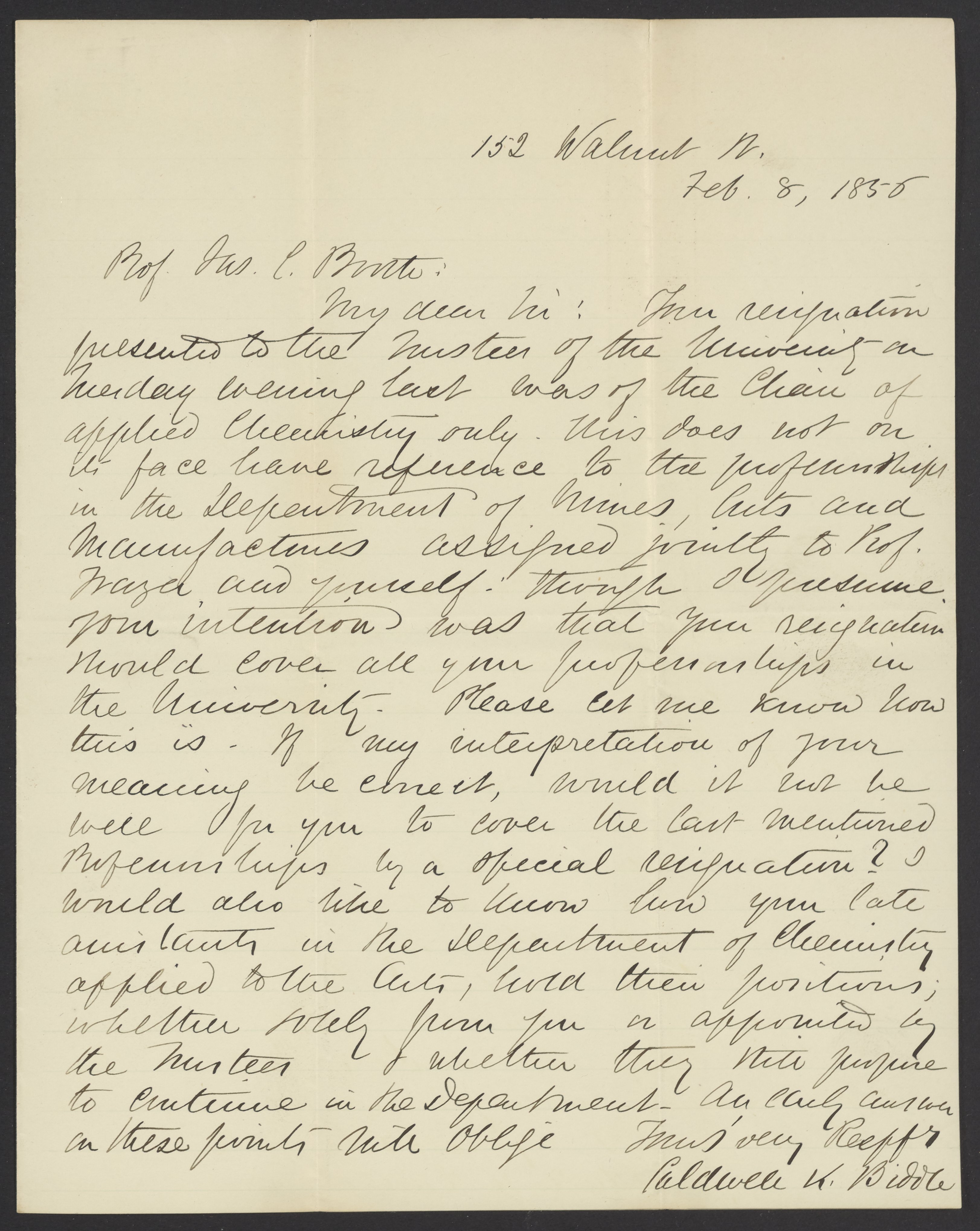 Letter from Caldwell K. Biddle to James Curtis Booth, February 8, 1856