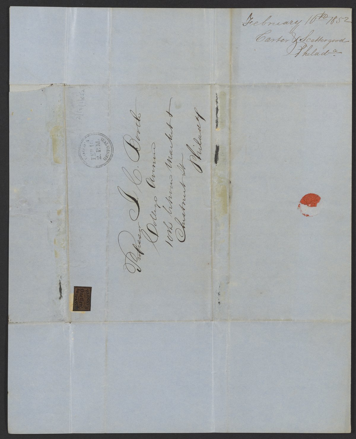 Carter & Scattergood. “Letter from Carter & Scattergood to James Curtis Booth, February 16, 1852,” February 16, 1852. Papers of James Curtis Booth, Box 1, Folder 6. Science History Institute. Philadelphia. https://digital.sciencehistory.org/works/gud1yu1.