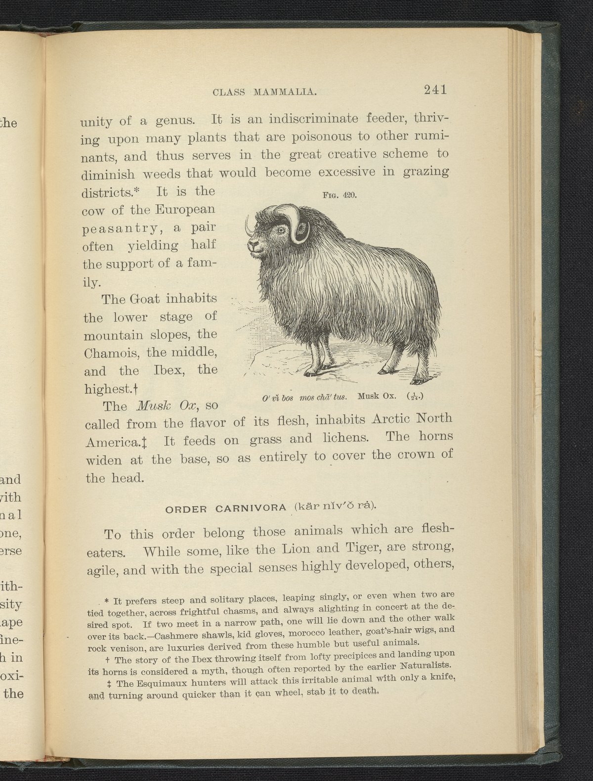 Figure 420 of the 1887 volume Popular Zoology depicting a musk ox.