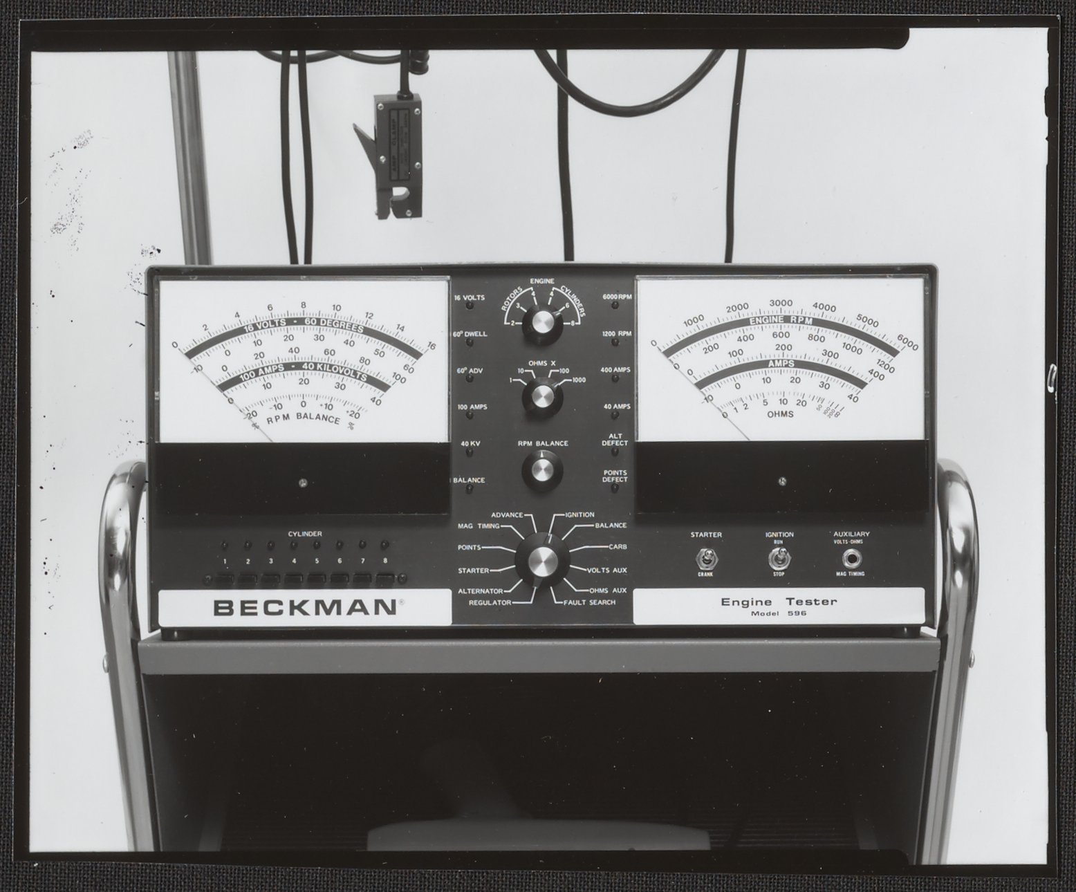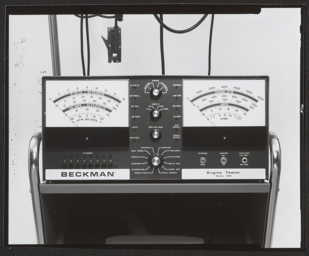 Karjalas' Photo Vision. “Beckman Model 596 Engine Tester,” n.d. Beckman Historical Collection, Box 84. Science History Institute. Philadelphia. https://digital.sciencehistory.org/works/h128nd867.