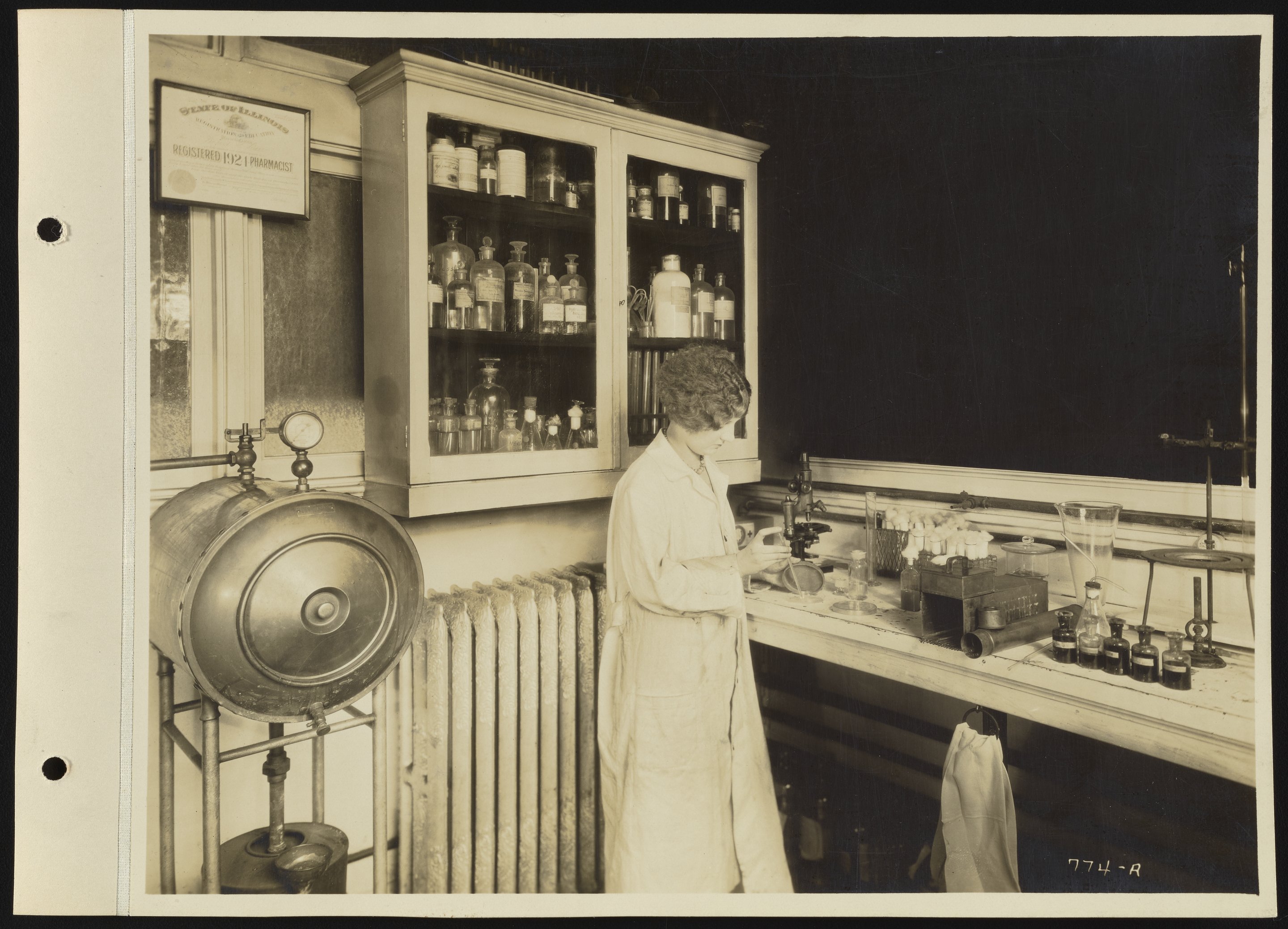 Dearborn Chemical Company. “Female Technician at Work in Dearborn Laboratory Facility,” 1924. BetzDearborn, Incorporated Records, Box 17, Folder 13. Science History Institute. Philadelphia. https://digital.sciencehistory.org/works/h128nf570.