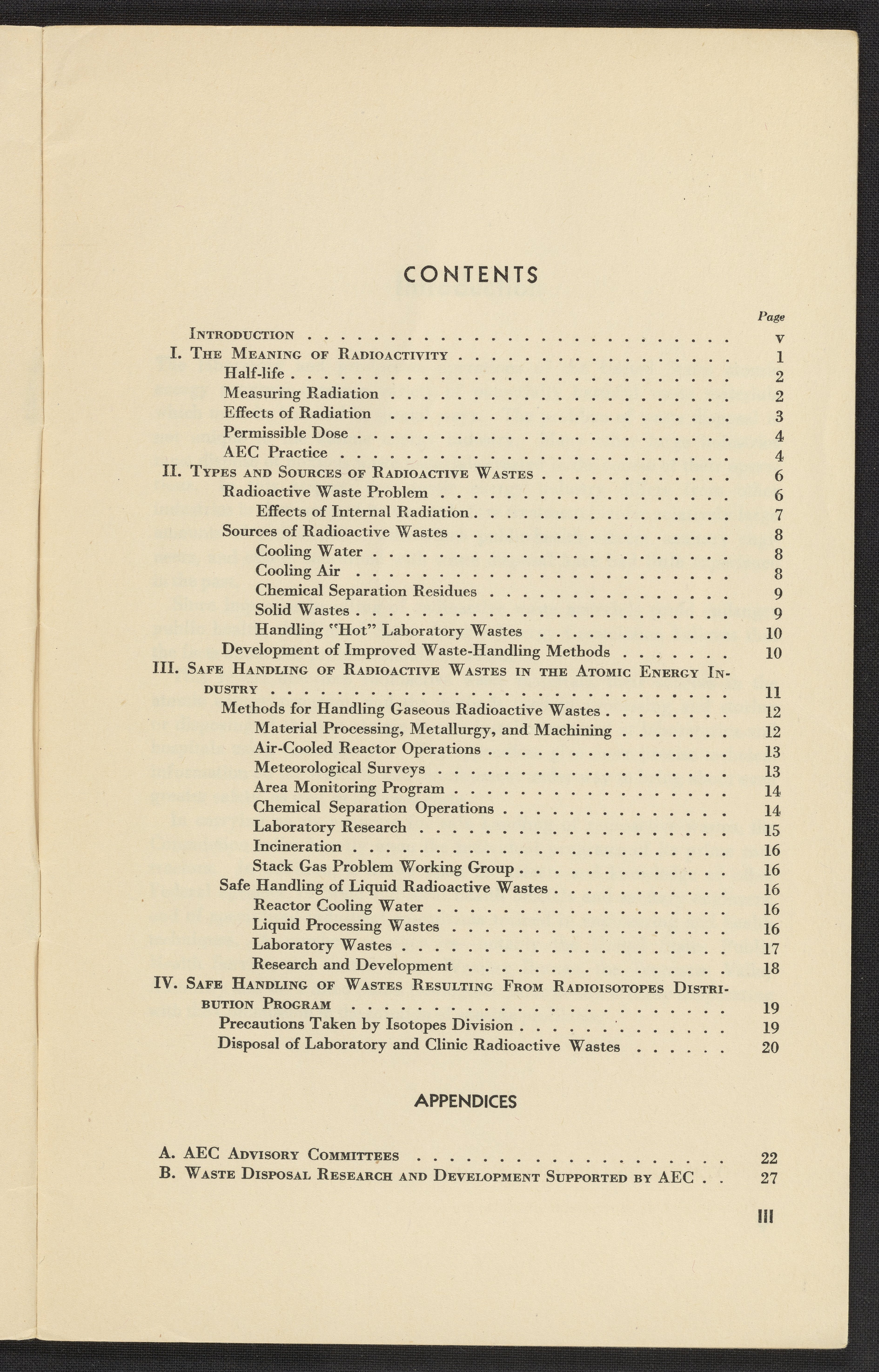 Small JPG1200 x 1892px — 308 KBLarge JPG2880 x 4541px — 2.1 MBFull-sized JPG3678 x 5799px — 3.4 MBOriginal fileTIFF — 3678 x 5799px — 61.1 MB"This report describes radioactive waste materials, their sources in the atomic energy program, and the methods used on processing and storing or disposing of them at atomic energy installations and at laboratories and hospitals using radioisotopes. The appendices give more precise technical information on the research and development under way to bring about even greater safety, as well as to lower costs."