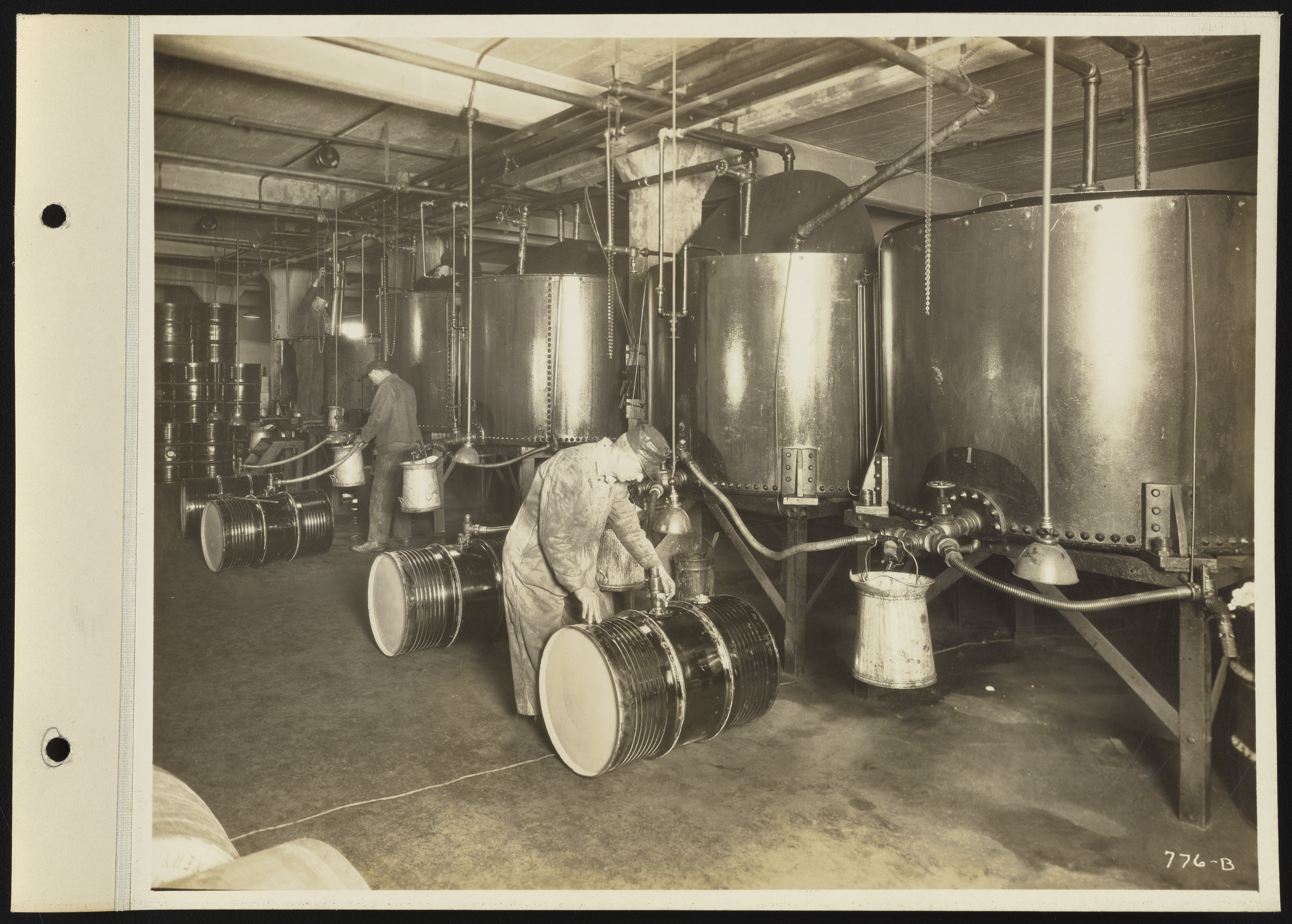 Dearborn Chemical Company. “Barrell Filling at Dearborn Manufacturing Facility,” 1930–1939. BetzDearborn, Incorporated Records, Box 17, Folder 13. Science History Institute. Philadelphia. https://digital.sciencehistory.org/works/h415pb509.
