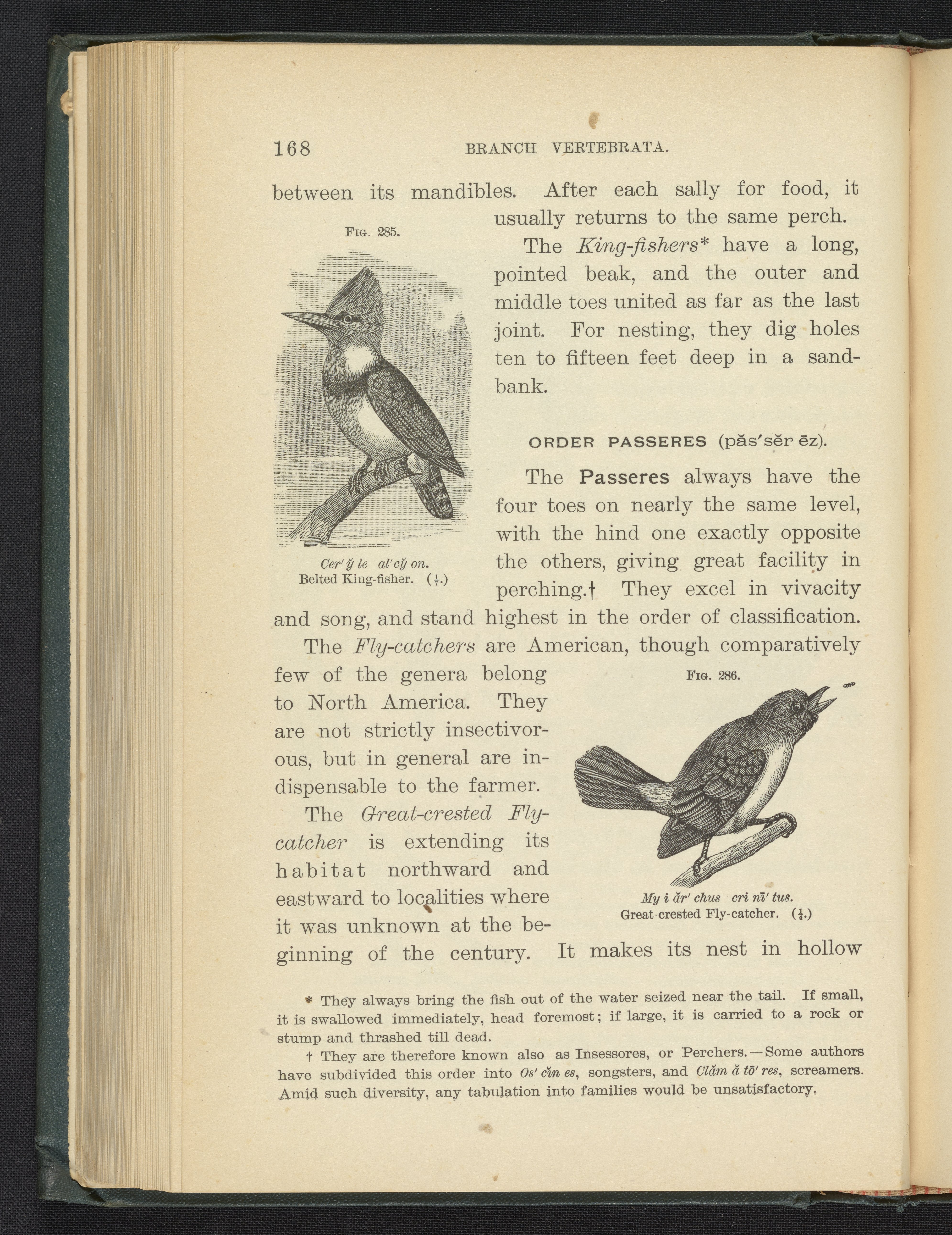 Steele, Joel Dorman, and Jenks, J. W. P. (John Whipple Potter). “Figure 285. Belted King-Fisher. Figure 286. Great-Crested Fly-Catcher.” Popular Zoology. New York, New York: Chautauqua Press, 1887. https://digital.sciencehistory.org/works/h4nnkhl.