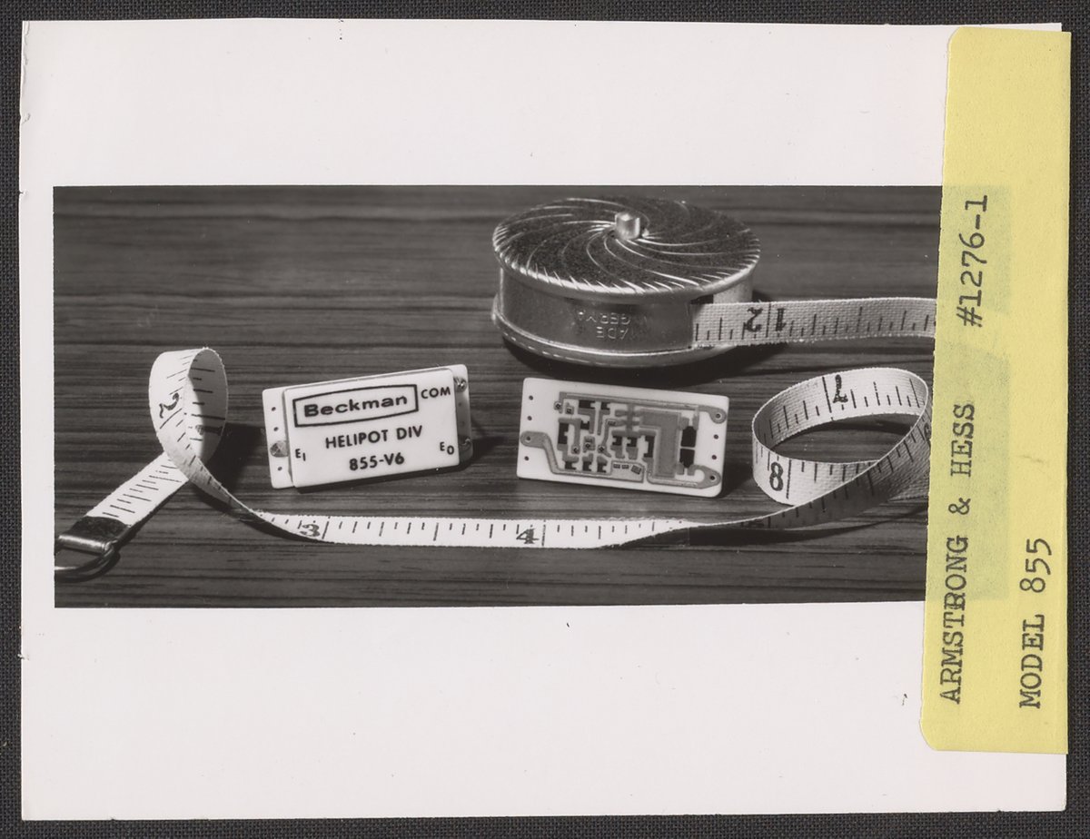 Armstrong & Hess. “Helipot Model 855 Voltage Regulators with Measuring Tape,” 1950–1969. Beckman Historical Collection, Box 85. Science History Institute. Philadelphia. https://digital.sciencehistory.org/works/h702q670t.