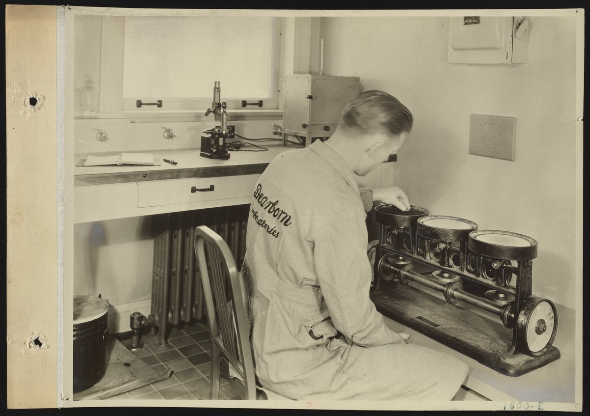 Dearborn Chemical Company. “Al Woodward Conducting Corrosion Test at Dearborn Laboratory Facility,” circa 1930. BetzDearborn, Incorporated Records, Box 17, Folder 13. Science History Institute. Philadelphia. https://digital.sciencehistory.org/works/h702q731b.