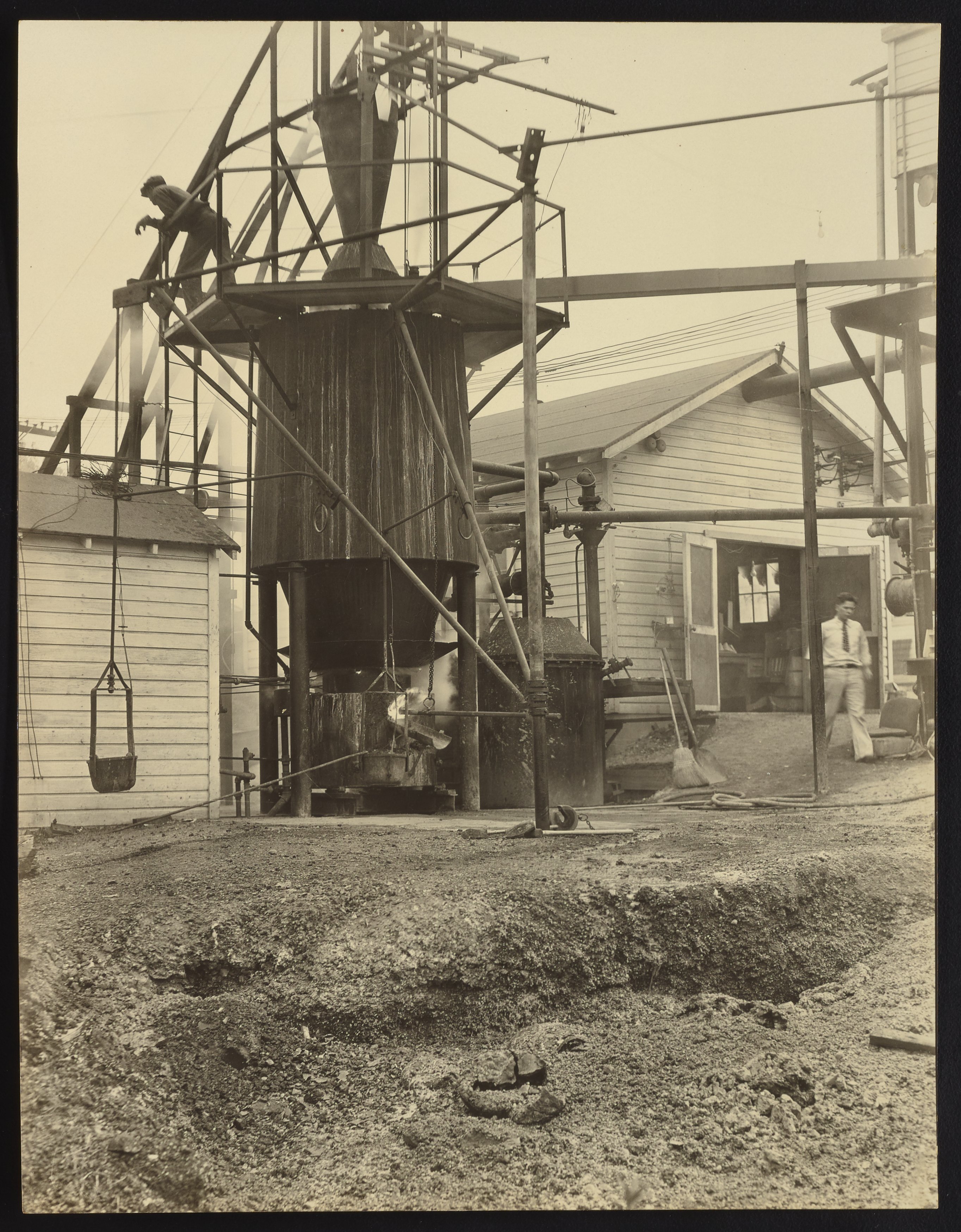“Experimental Blast Furnace at Fixed Nitrogen Research Laboratory Plant,” October 12, 1932. Travis P. Hignett Collection of Fixed Nitrogen Research Laboratory Photographs, Box 3. Science History Institute. Philadelphia. https://digital.sciencehistory.org/works/h989r345z.